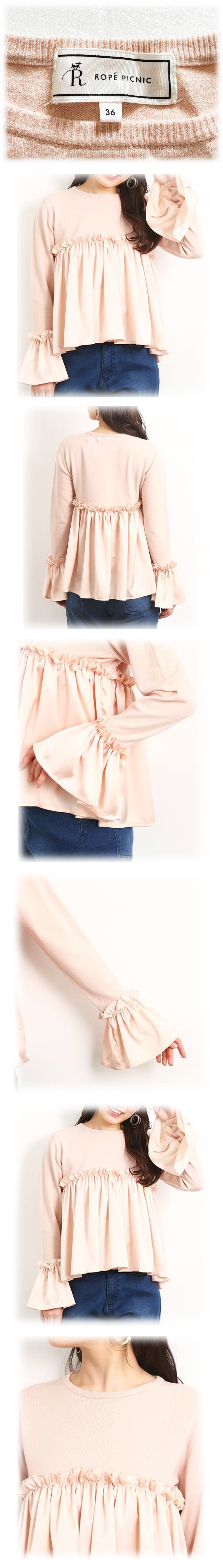 ROPE PICNIC ロペピクニック サテン切替ニット プルオーバー カットソー フリル ピンクベージュ かわいい ガーリー 美品 人気 送料無料 收藏