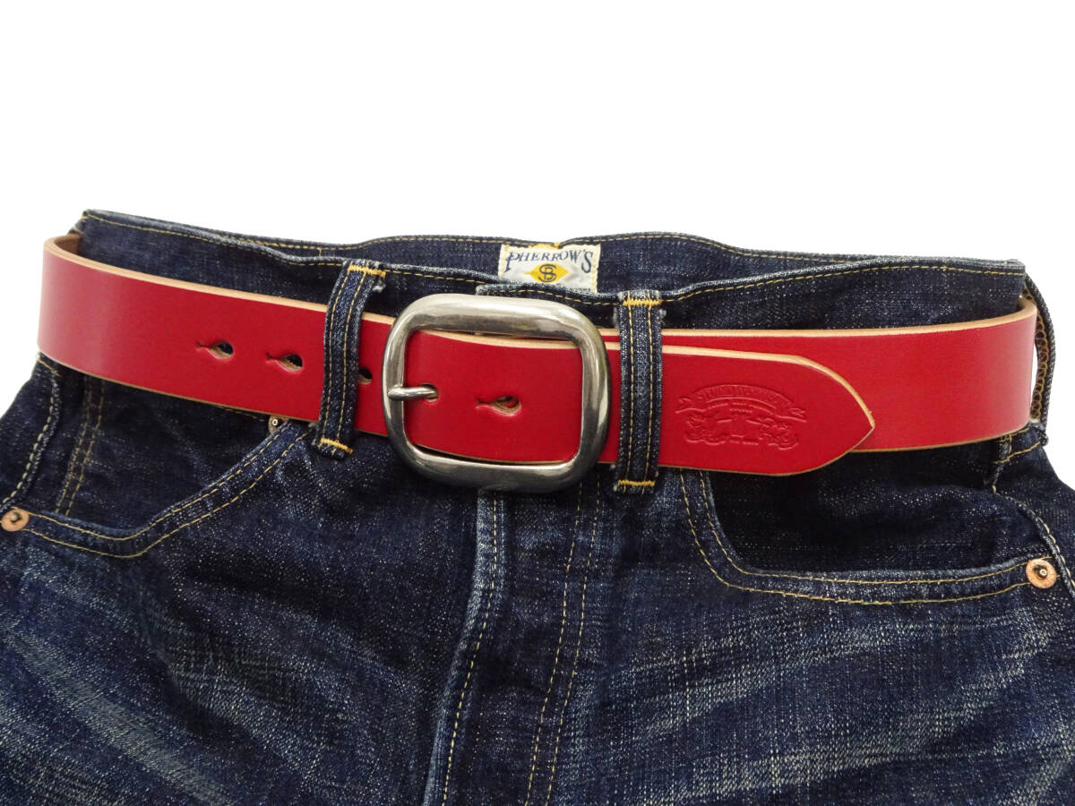 (サイズ34) ステュディオ ダルチザン ベンズレザー ベルト Studio Dartisan 本革 38mm幅 5mm厚 オーバル真鍮バックル B-87 レッド 新品 收藏
