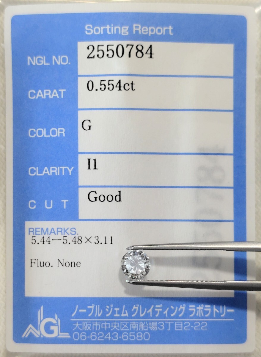 【11/2(日)】天然ダイヤモンド ルース 0.554ct G I1 鑑別 NGL│A5218lvo【Iクラス】 ダイヤ diamond 收藏