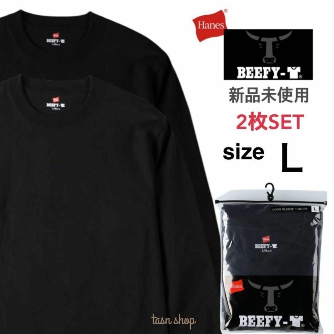 【ヘインズ】新品未使用 ビーフィー 無地 ロンT 男女兼用 ブラック Lサイズ 2枚セット 收藏
