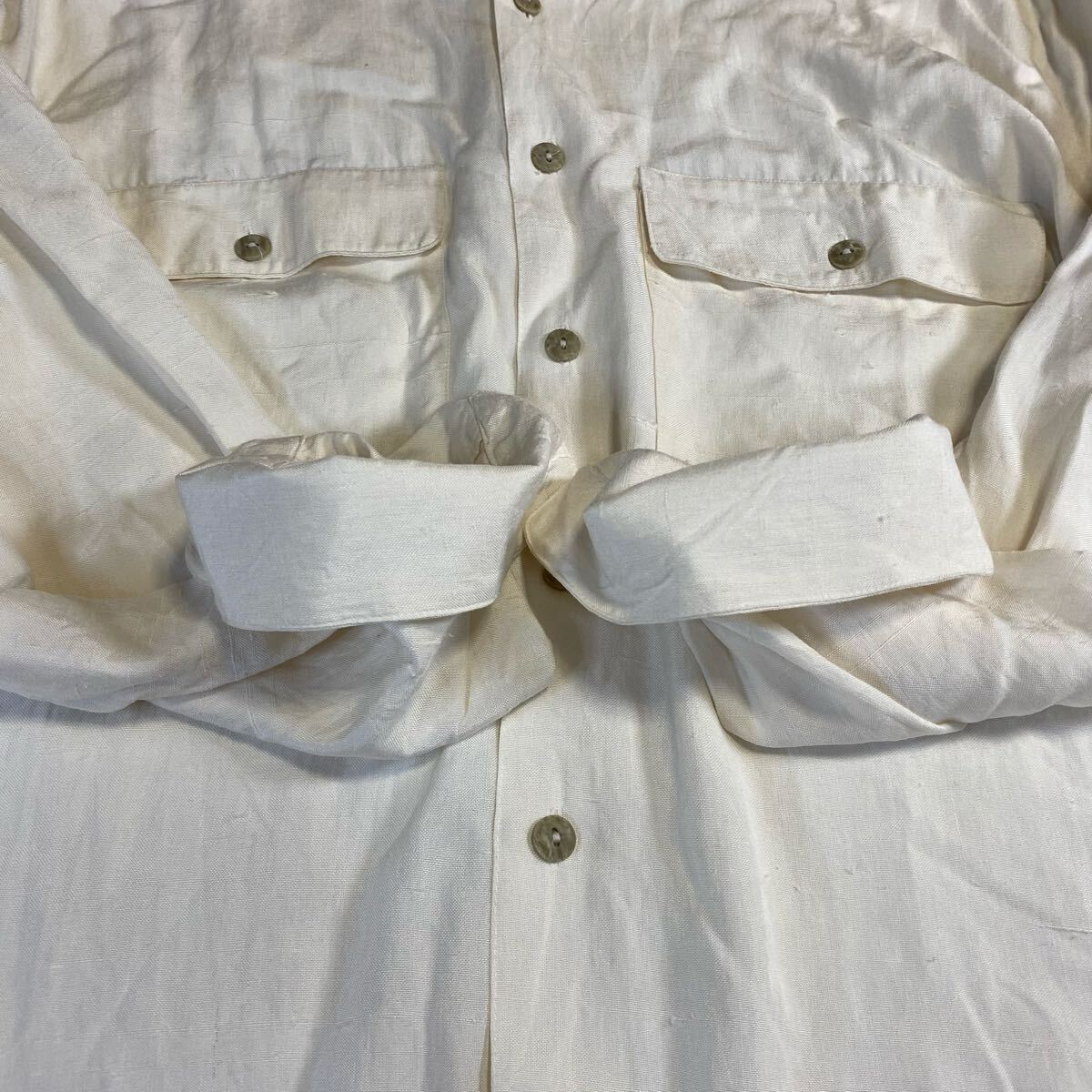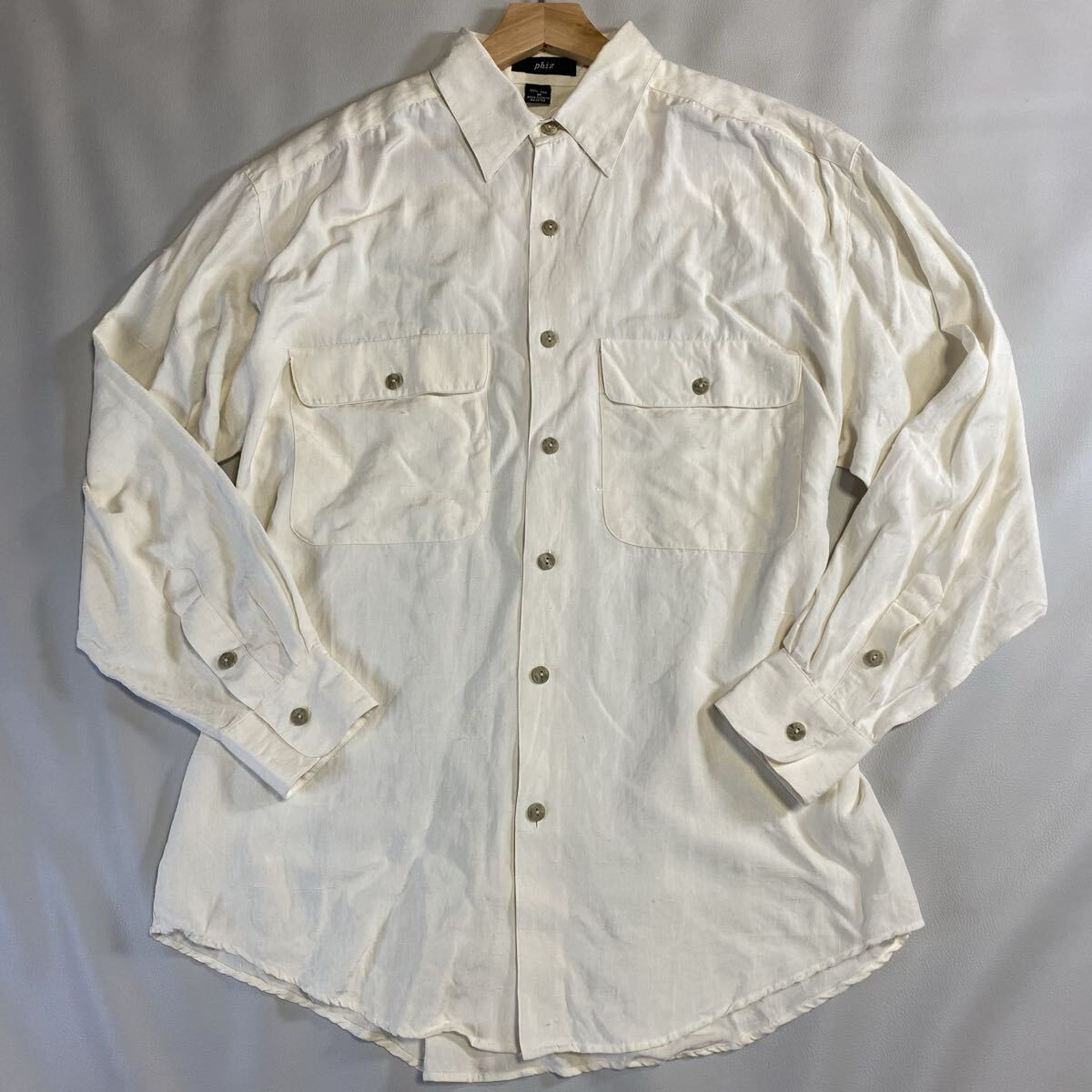 phiz フィズ 100%シルク 長袖シャツ 生成り L相当 90s シルクシャツ ホワイト メンズ カジュアル 收藏