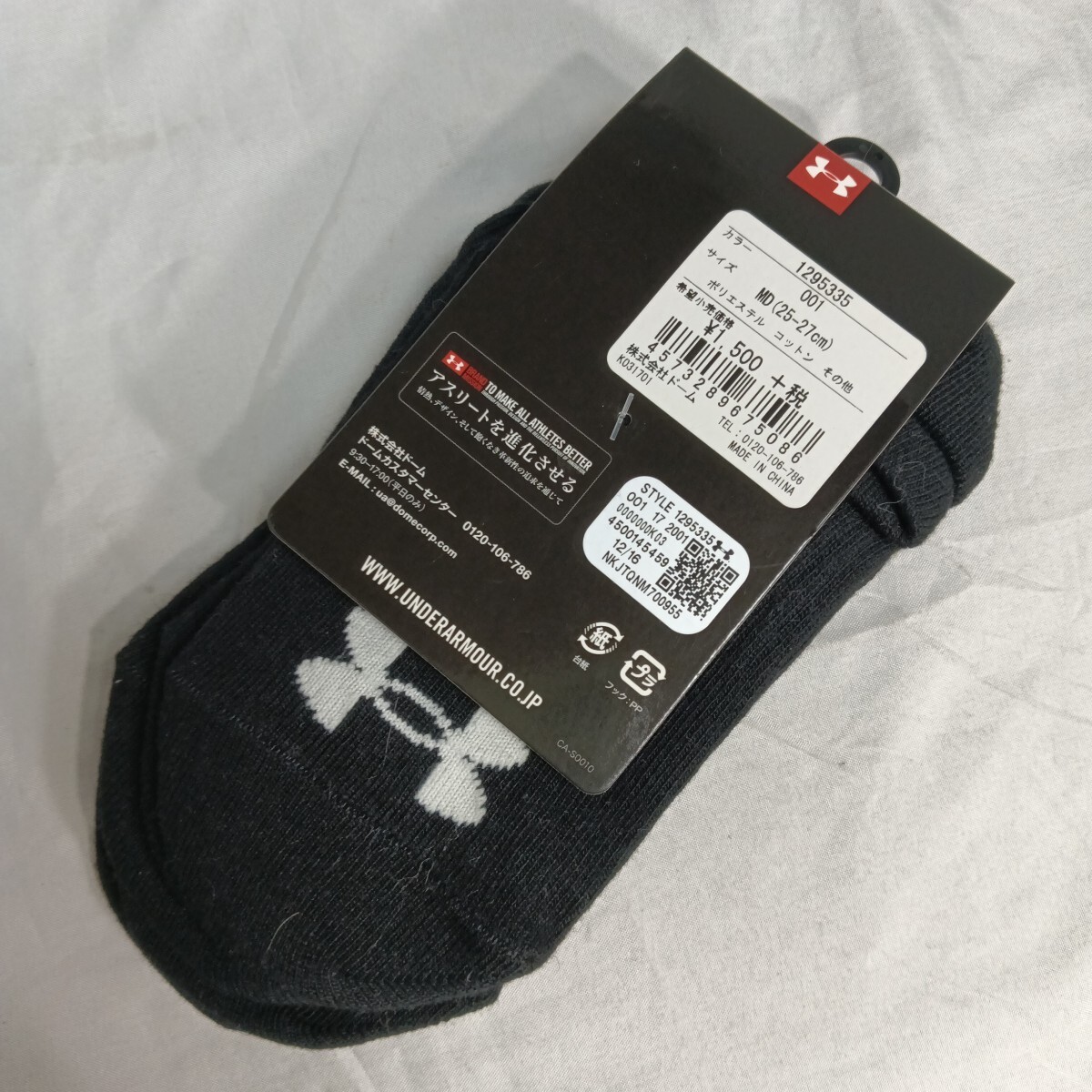 アンダーアーマー(ドーム)の靴下です。サイズは、25〜27センチです。素材は、ポリエステル、コットン、その他です。色は、黒色です。3足セットです。送料が高くなるのでバラしてお送りいたします。未使用ですが自宅保管品です。
