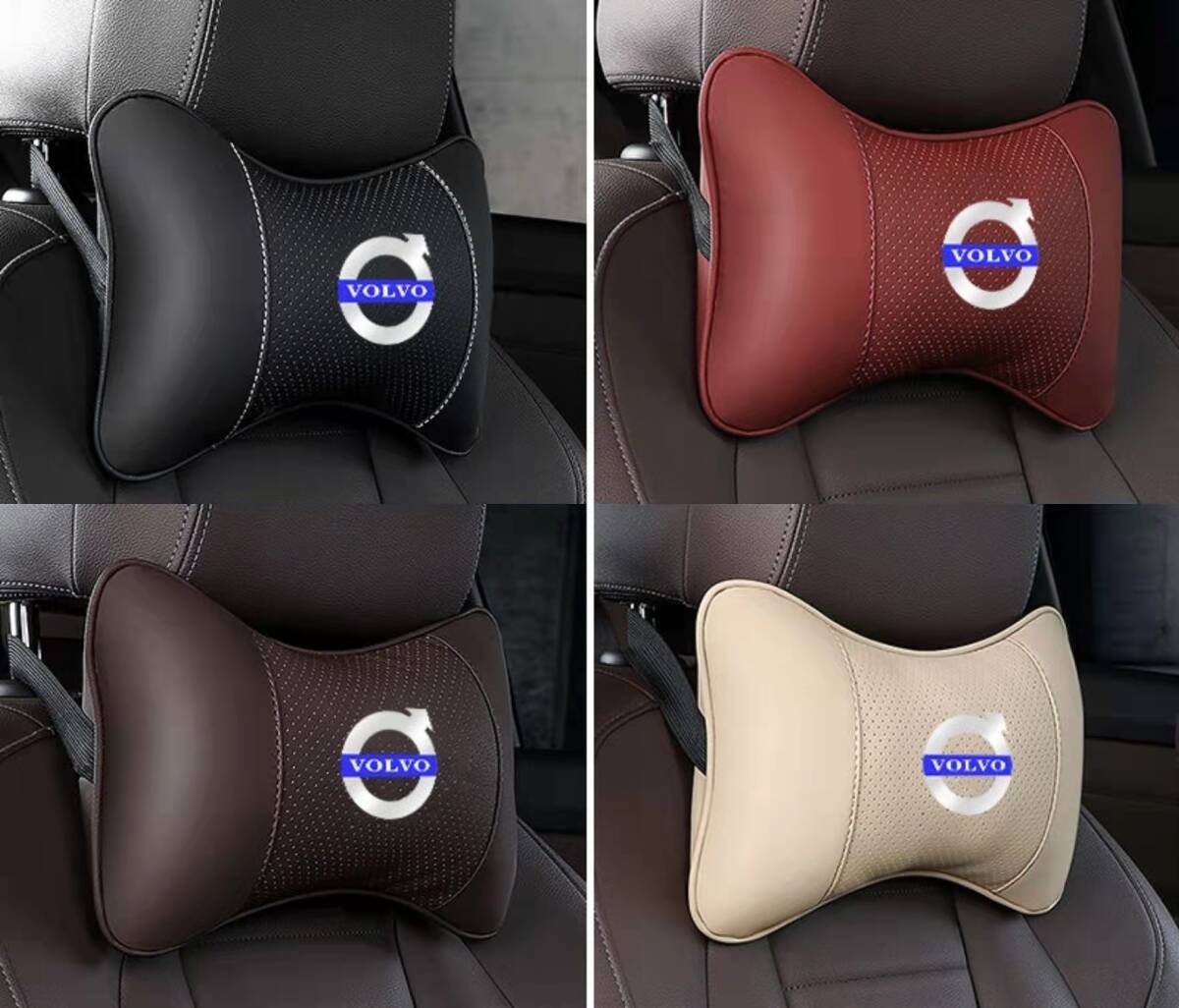 即決 ボルボ VOLVO ネックパッド 2個 ロゴレザー 内装パーツ 首用クッション 4色選択可 收藏