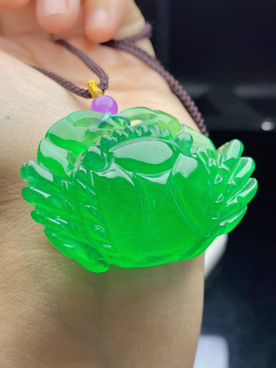 Aグレード翡翠 冰種翡翠 満緑 カニ匹 帝王綠 高氷 吊墜 首飾 自戴 贈り物 箱付き時代物 骨董品 旧家蔵出し 唐物 中国古玩 古美術品9.15 收藏