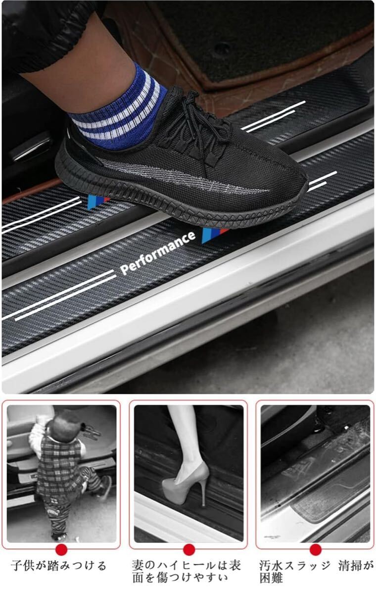 Volkswagen フォルクスワーゲン ドアスカッフプレート サイドステップガード カーボン調 傷防止 保護ステッカー 4枚セット 收藏