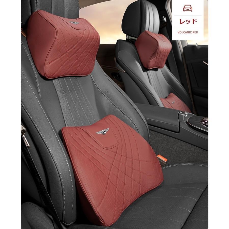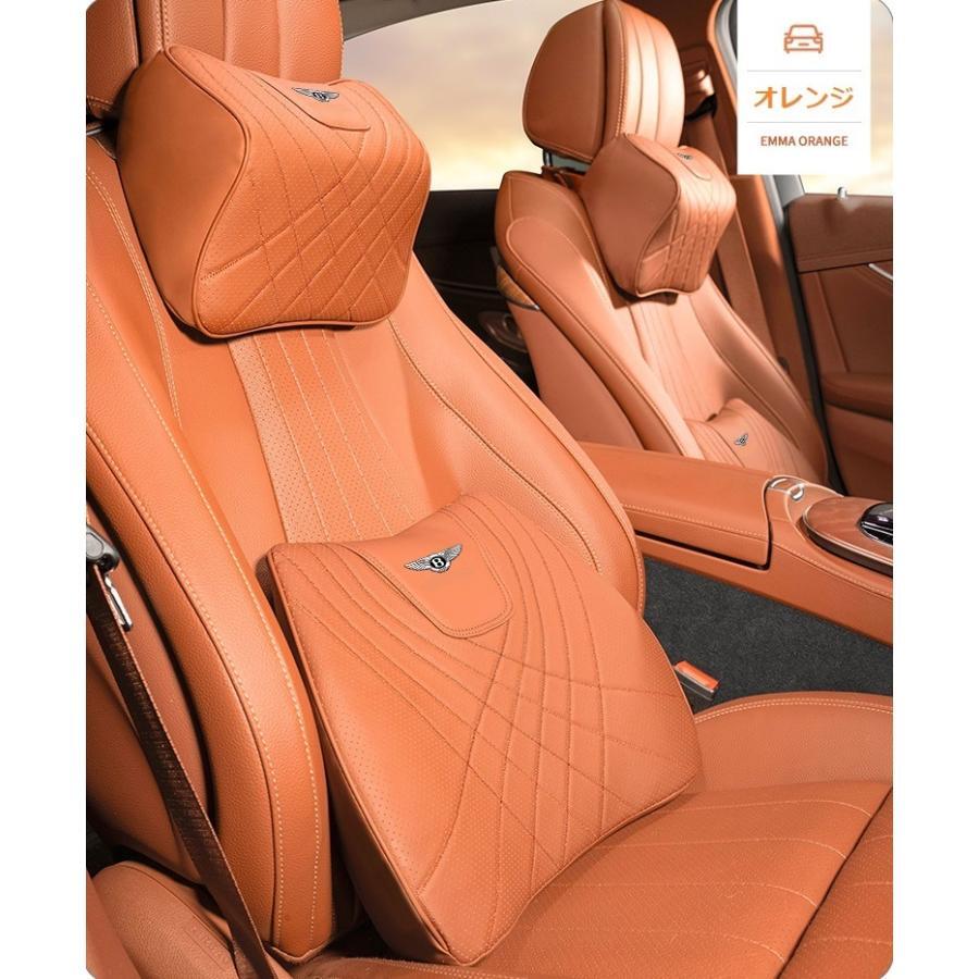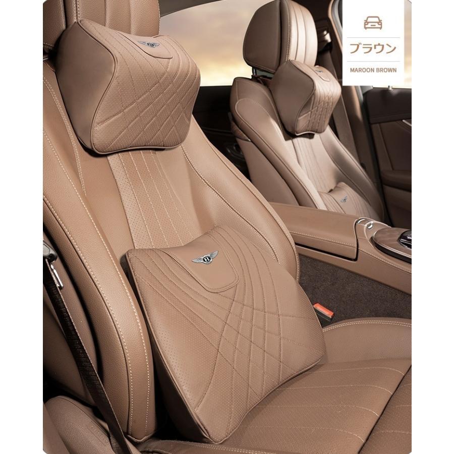 ベントレー Bentley ネックパッド 腰クッション 車用 背もたれクッション ネックピロー ヘッドレスト ナッパレザー 低反発 背当て 5色選択