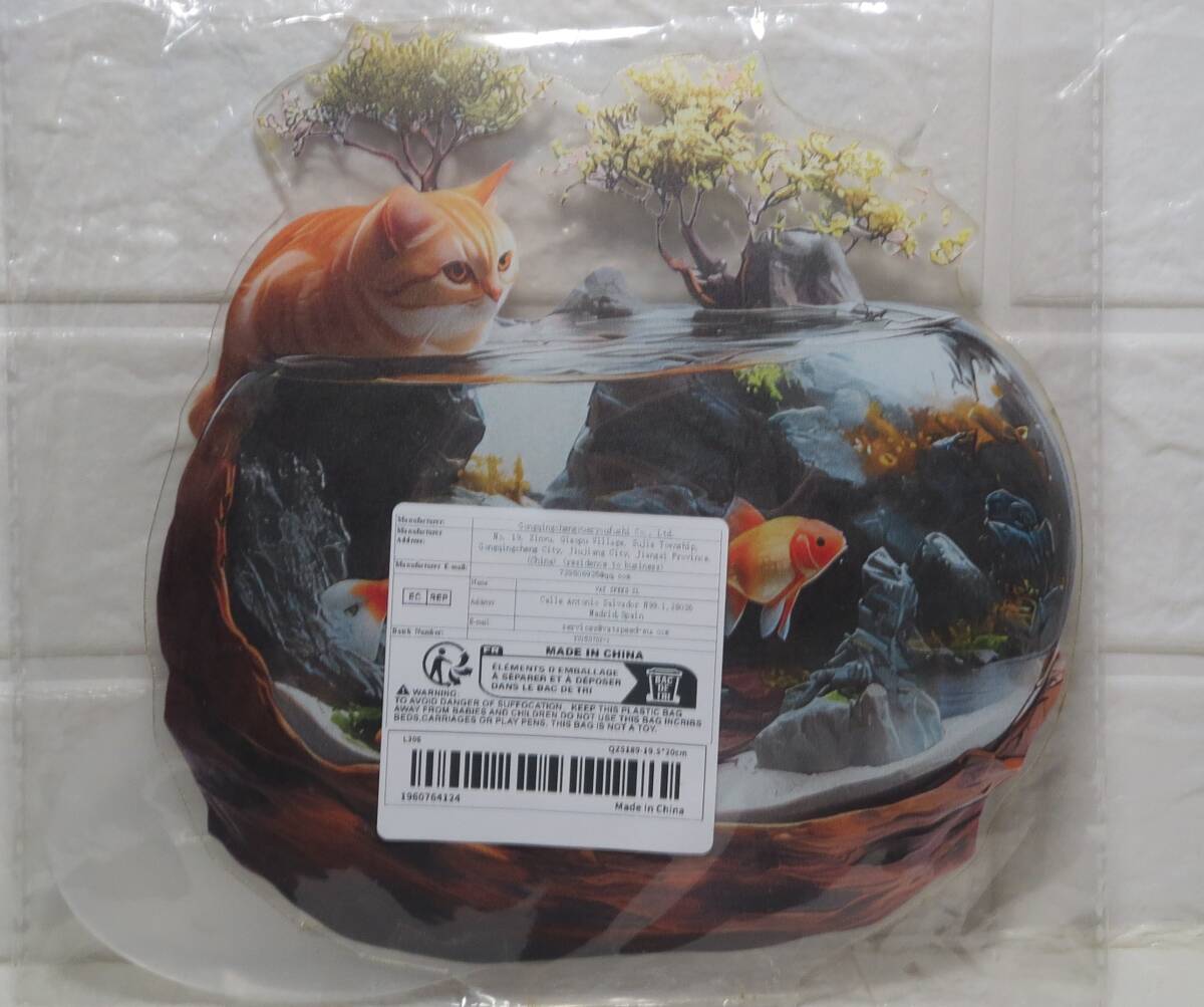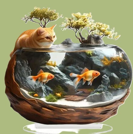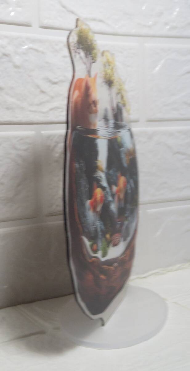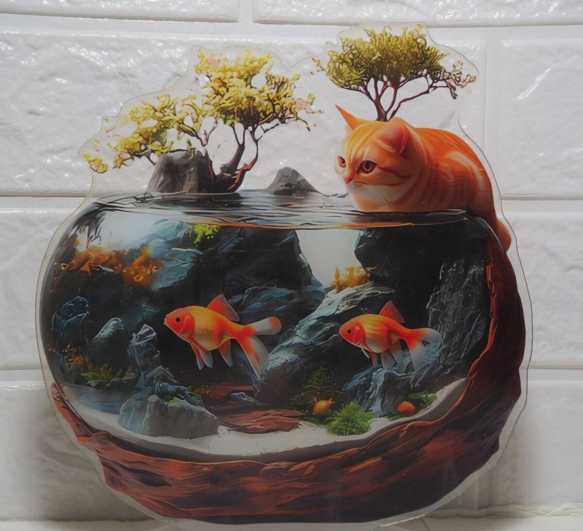 2D・金魚を眺める猫の図・立体描法のアクリルスタンド・出窓装飾・内から外から綺麗・サンキャッチャー・小型水槽のオブジェとしても 收藏