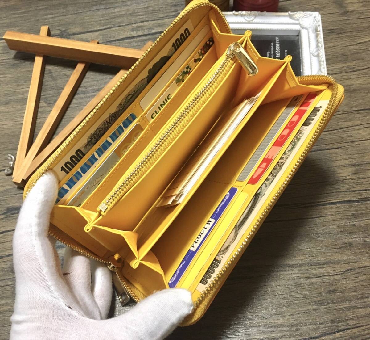オイル加工 牛床革 黄色 長財布 メンズ レディース 小銭入れ 金運アップ 收藏