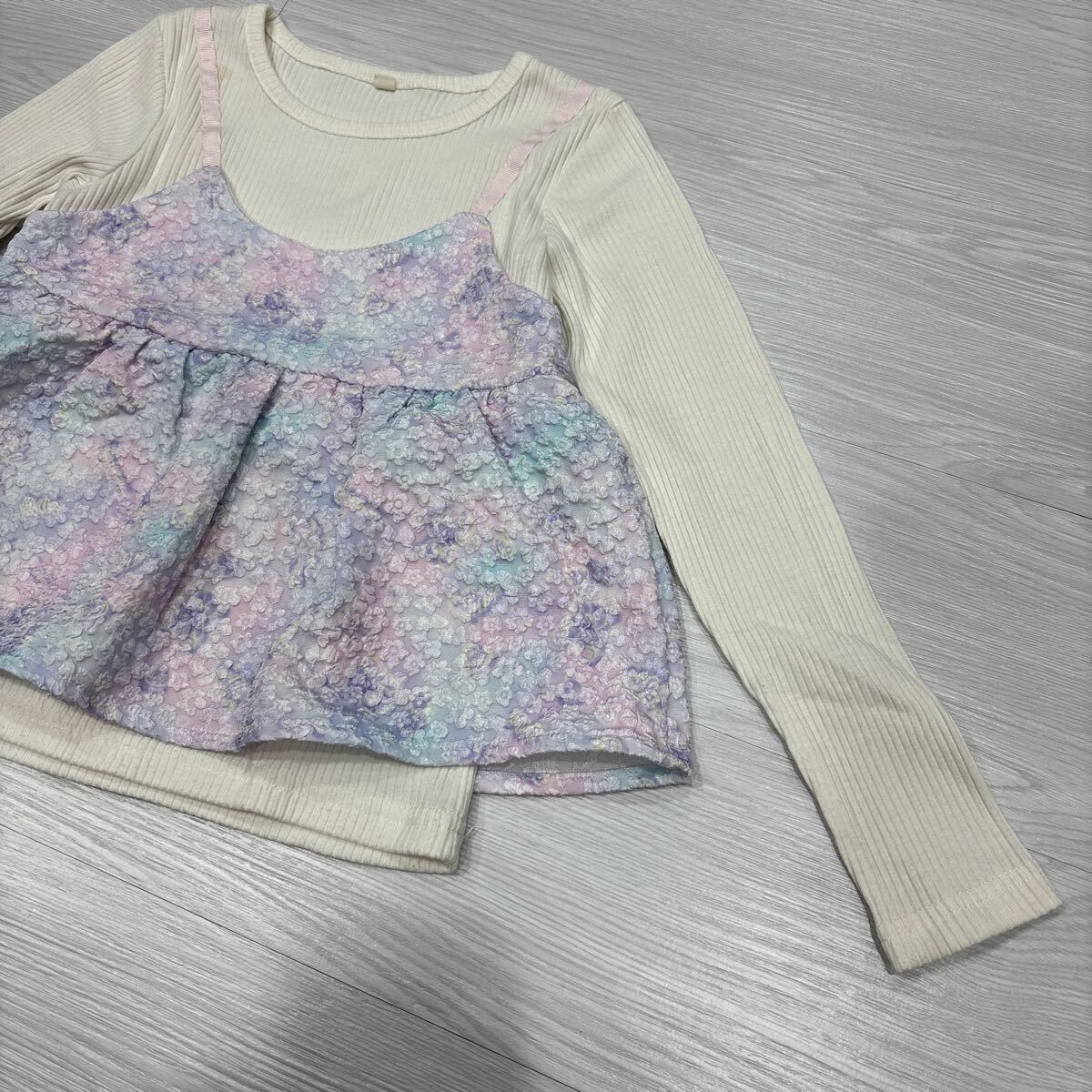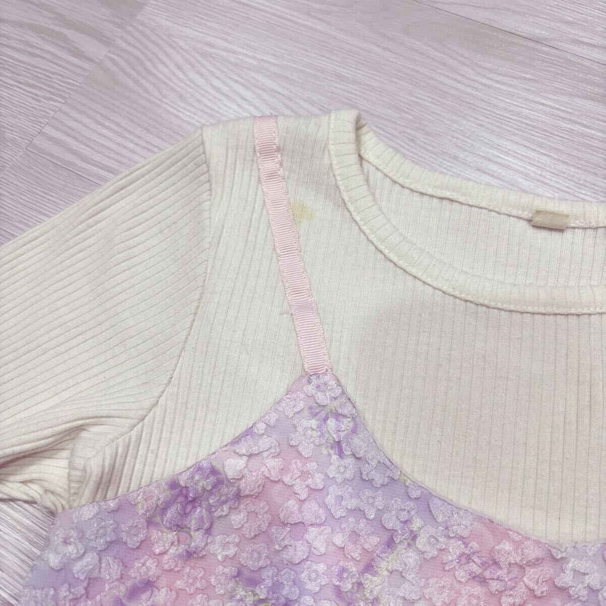 紫陽花のような綺麗なグラデーションが可愛い重ね着風ロングカットソーです。