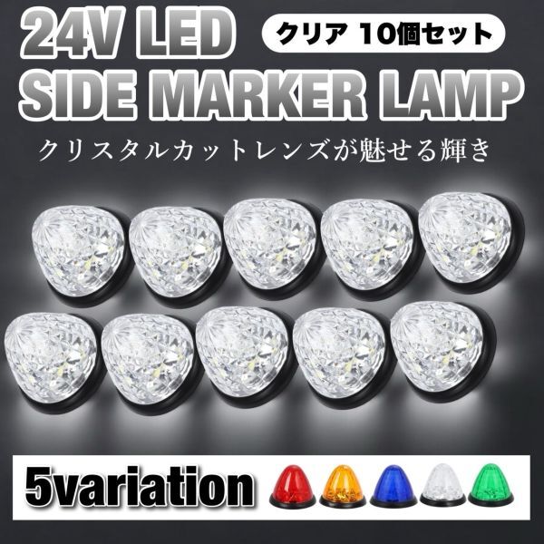マーカーランプ LED 24V 10個セット サイドマーカー トラック 外装 高輝度 ダイアモンドカットレンズ LEDマーカー 汎用品 クリア 375 收藏