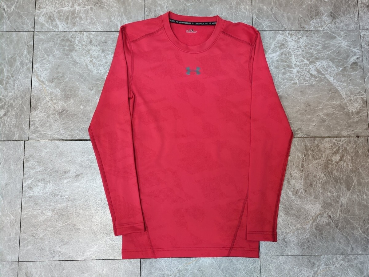 13.アンダーアーマー UNDER ARMOUR ジャカードLSクルー センターロゴ 長袖インナーシャツ MCM3352 メンズMD 赤x402 收藏