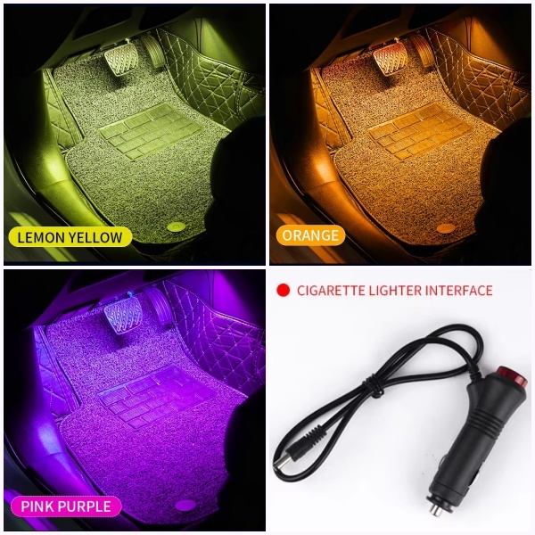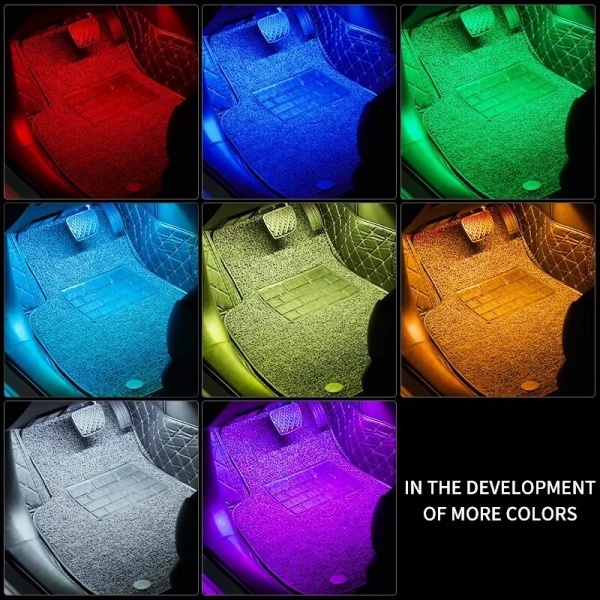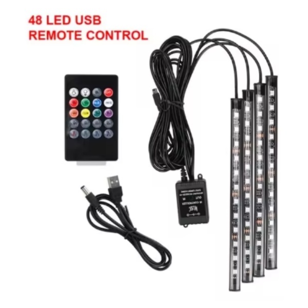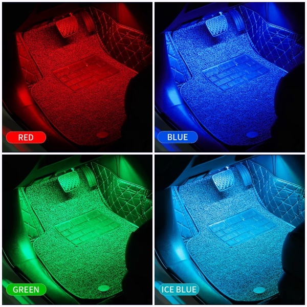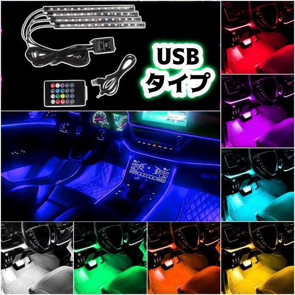 USB式 音楽連動 LED フロアライト 4本 リモコン付き 車内 イルミ 足元 装飾 フットライト RGBテープ 12V 24V LEDテープ 赤 緑 紫 汎用 收藏