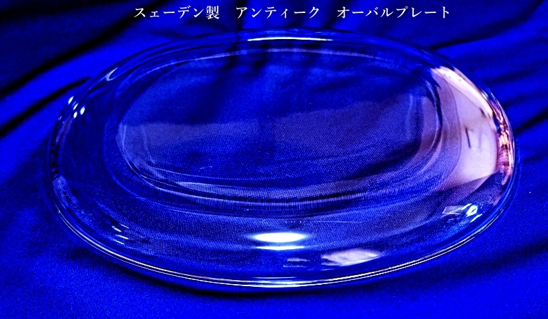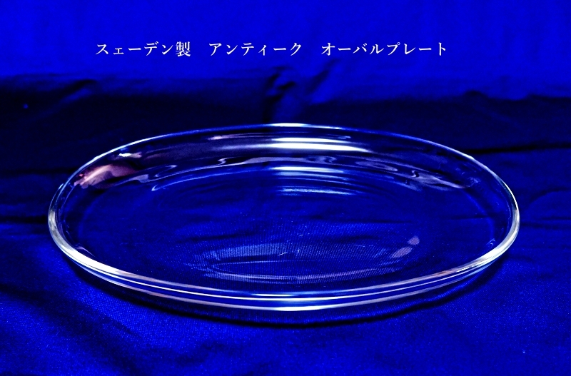 たわみガラスボウル作家物 ガラス鉢24.2㌢/スェーデン製 アンティーク オーバルプレート27.7㌢ 收藏