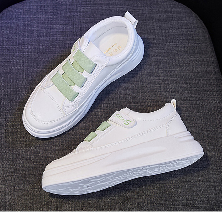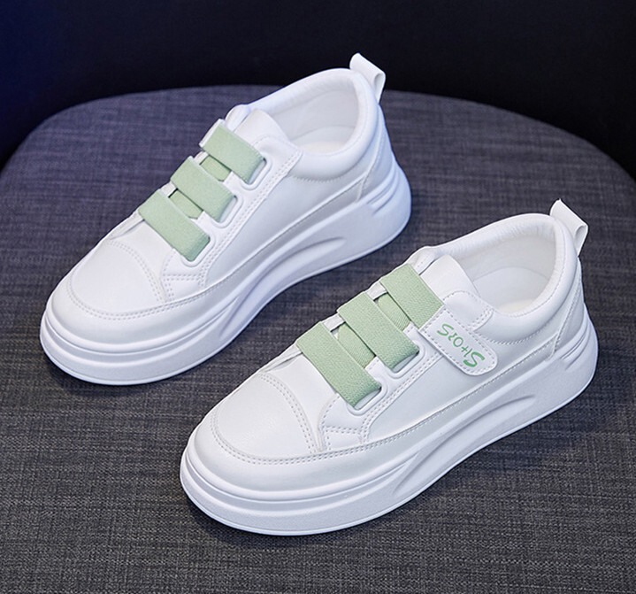 厚底スニーカー ローカット マジックテープ おしゃれ フラットシューズ バイカラー 美脚 シューズ 歩きやすい 疲れない グリーン 22.5cm 收藏
