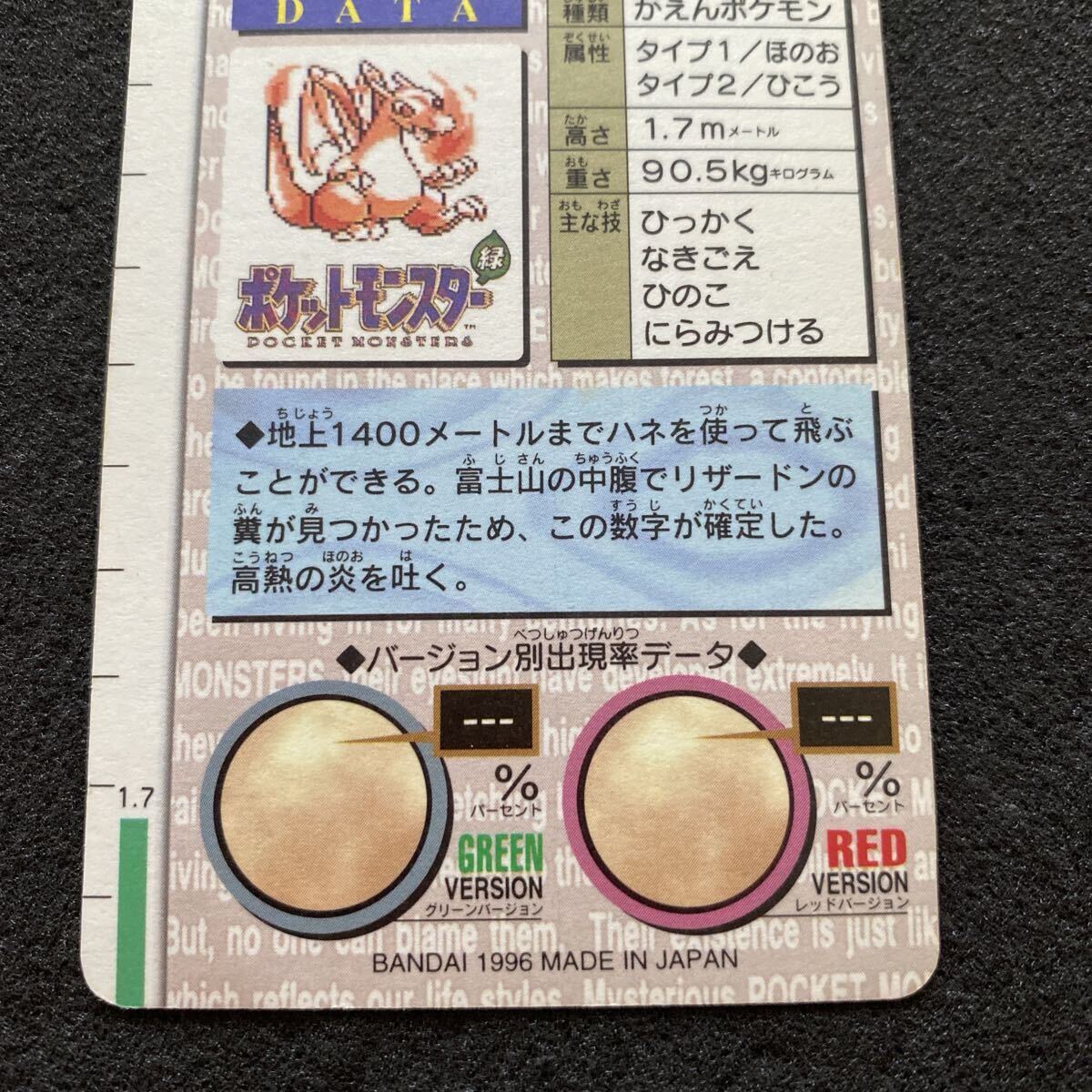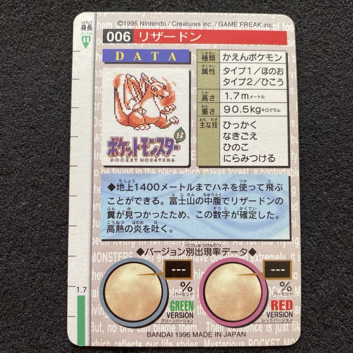 ポケモン カードダス No.006 リザードン プリズム キラ 背景緑 モンスターズコレクション アニメ ポケットモンスター ゲーム トレカ 並上品 收藏
