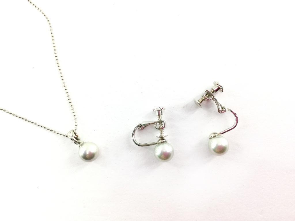 上品な淡水パールを使用したネックレスとイヤリングの2点セットです。