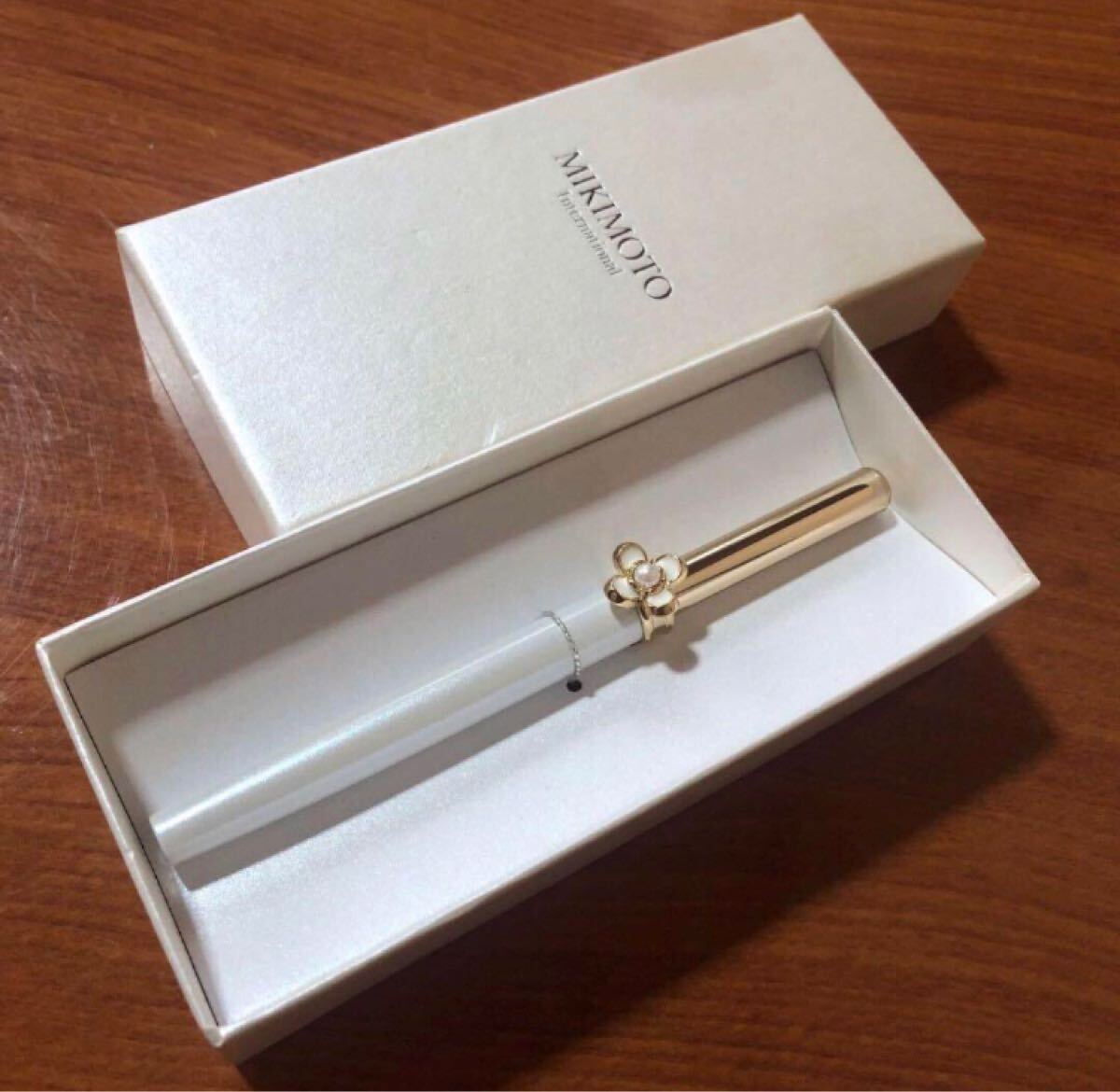 〈送料無料〉ミキモト リップブラシ 紅筆 真珠 パール フラワーモチーフ 花 白 化粧小物 收藏