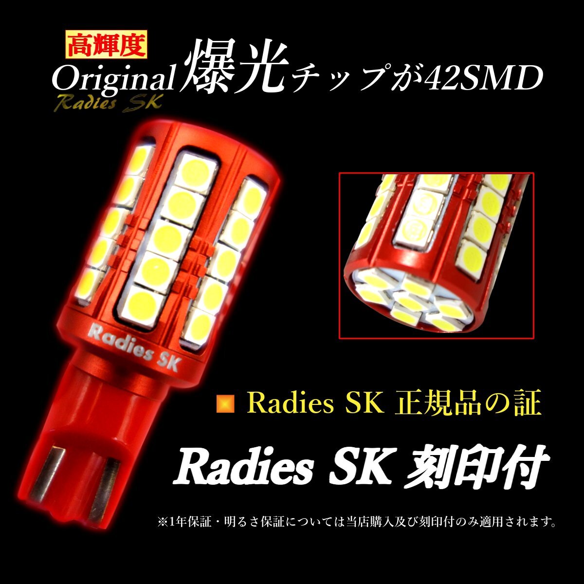 爆光オリジナルチップを採用 側面:35SMD 先端:7SMD バルブには『Radies SK』刻印を施しています。 類似品の明るさや車検対応は対象外です。 |