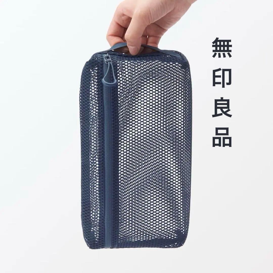 新品 MUJI 無印良品 立体メッシュケースポーチ Mサイズ ネイビー 收藏