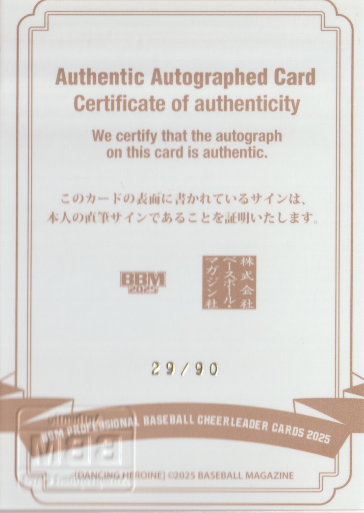 Manami 埼玉西武ライオンズ bluelegends BBM プロ野球チアリーダーカード 2025 DANCING HEROINE 直筆サインカード 收藏