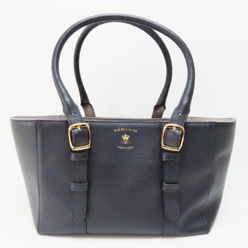 M05-k006 ADMJ エ―ディーエムジェイ ロゴプレート レザー トートバッグ ハンドバッグ ネイビー 收藏