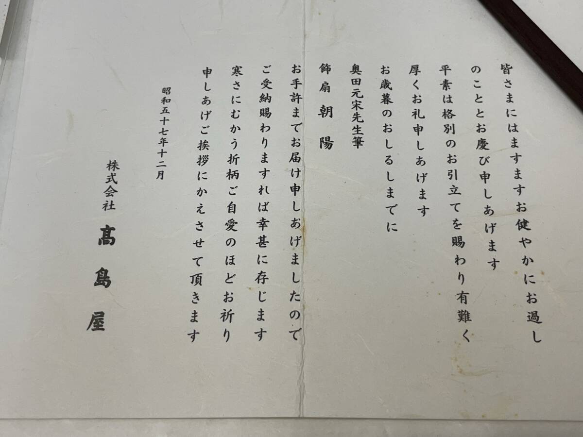| 【Y1037】 高島屋 外商 末広 奥田元宋 筆 朝日 未使用 | ||