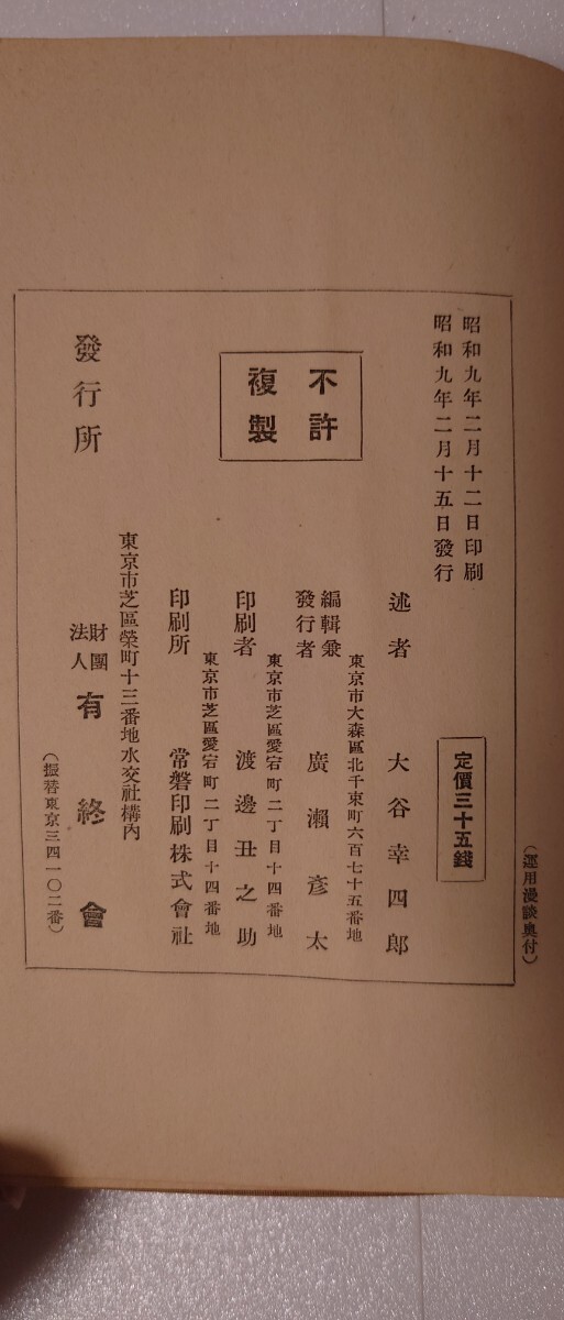 昭和9年(1934)2月15日発行、法財團 有終會刊。