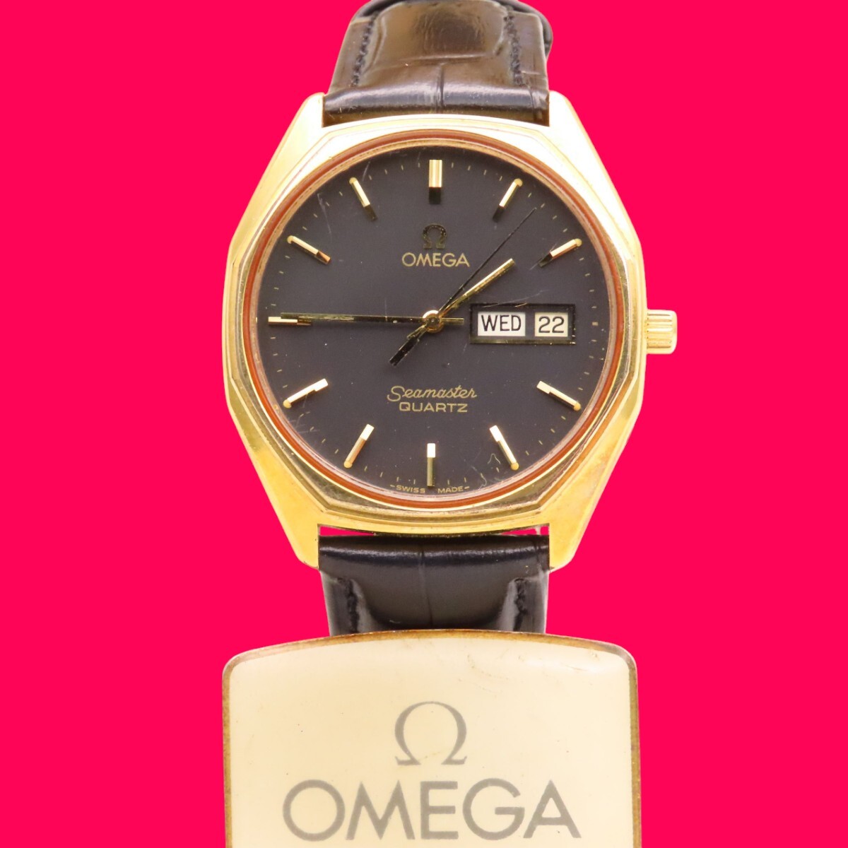 ■♪価格高騰!資産価値!稼働電池新品メンズビンテージ高級超レア! OMEGA オメガ Seamaster シーマスター デイデート クオーツ ベルト新品 收藏