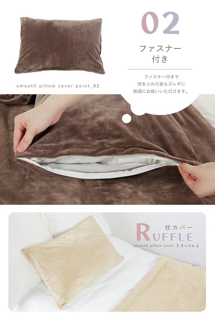 枕カバー ピローケース 水晶フランネル 43×63cm用 まくらカバー 封筒式 ファスナー 寝具 洗濯可 シンプル モカ 收藏
