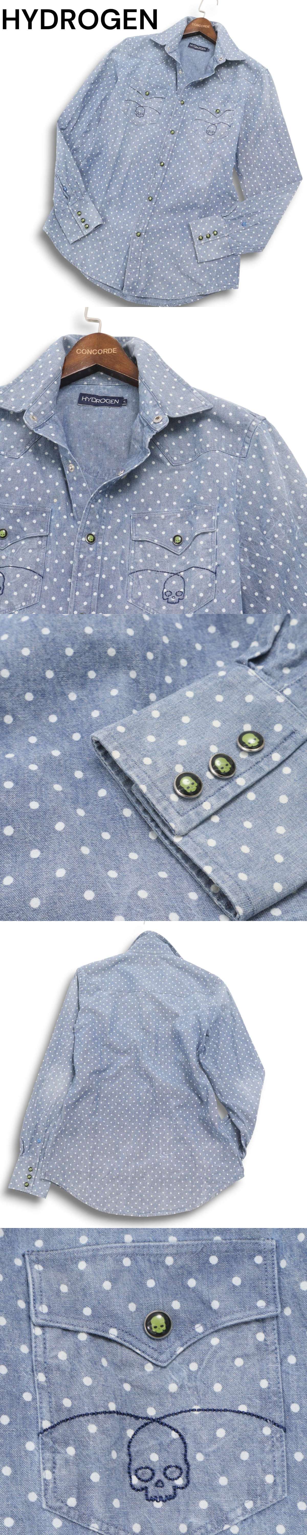 HYDROGEN ハイドロゲン スカル刺繍★ USED加工 長袖 シャンブレー デニム ウエスタン シャツ Sz.XL メンズ 大きいサイズ 收藏