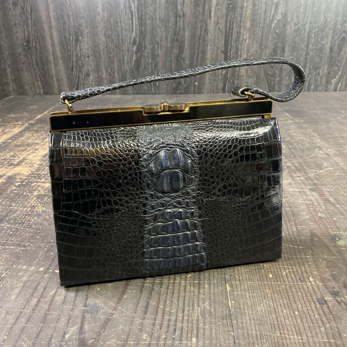 2528 クロコダイル ハンドバッグ ブラック ゴールド金具 ワニ革 鰐革 鞄 收藏