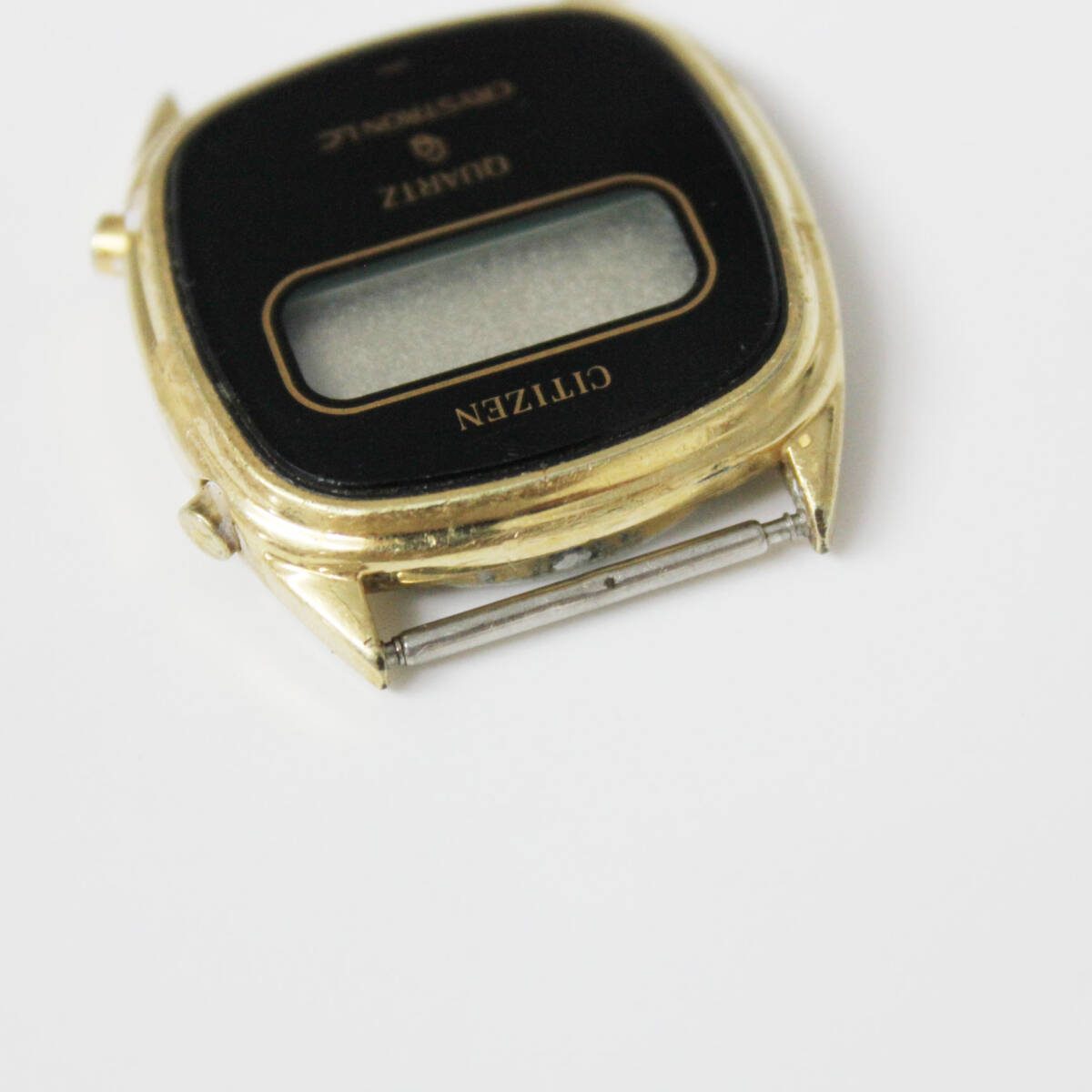 W251023-18 CITIZEN CRYSTRON LC シチズン クロストロン 4-097441 メンズ腕時計 クォーツ デジタル ジャンク ブラック ゴールド 收藏