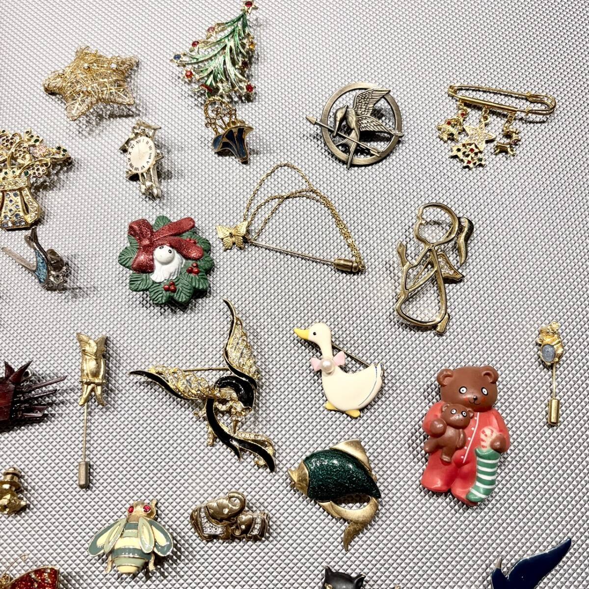 動物 アニマル 帽子 人物 ツリー 昆虫など 変わり種 ブローチ 大量セットです。数店ネックレストップも入っています。
