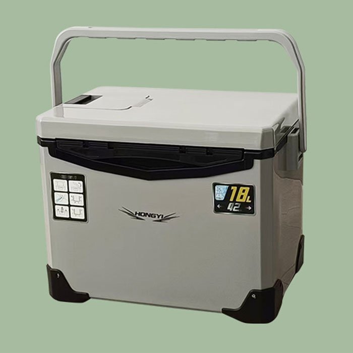 釣り用 クーラーボックス 小型18L ふた両開き 座れる頑丈ボディ 防水 保温保冷 ハンドル/肩ベルト付き 保冷力24-48h (グレー・窓付き)
