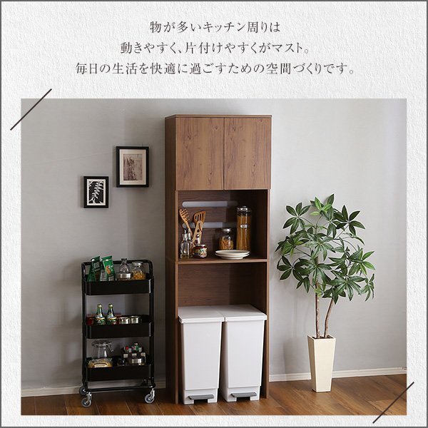キッチン収納★新品/ヴィンテージ 木製ごみ箱上ラック スリムタイプ 幅59cm/食器棚 家電収納棚 可動棚 コンセント付き/ウォールナット/a3 收藏