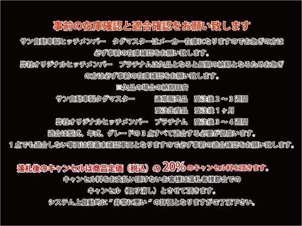 | サン自動車製ヴェゼル用 サントレックス ヒッチメンバー タグマスターです! ※メーカー欠品の場合は納期がかかります※ 取付適合データ ※型式・年式・グレード・その他条件が全て適合する必要があります ■型式:6AA-RV6 ■年式:R3.4~ ■グレード・注意事項:e:HEV Z ■条件:ノーマル車 ※適合・仕様等は予告なく変更される場合があります ※事前に最新適合情報のご確認をメーカーHP又は質問欄よりお願い致します 商品詳細 ■タイプ:スタンダード シックなブラック仕上(スチール製) ■電源ハーネス形状:汎用ハーネス ■牽引クラス(ヒッチメンバー許容荷重):750kg ■品番:TM324120 ■定価:74,800円(税抜 68,000円) ■クロスメンバー形状:角フレームボールマウント脱着式(F-1) ■穴あけ数:- ※穴あけ数は変更になる場合があります ■加工:牽引フック取り外し、バンパー脱着、コンビネーションランプ脱着 ※記載が無い場合でも加工が必要になる場合があります ■ボールマウント:上-4 ■付属品:2インチヒッチボール、ボールマウント、スリーブコンセント メス(丸ピン7極 国内トレーラー用)、コンセントプレート、電源ハーネス、クイックディスコネクトピン&Wクリップ、ヒッチボールカバー、取付ボルト類 ※セット内容及び形状は車種により異なります ※スリーブコンセントは多くの種類があります 付属するものは国内で一般的な丸ピン7極です ※連結するトレーラーによってボールマウントの高さが合わない場合があります 合わない場合は別途オプションボールマウントをご購入下さい(専用品には使用できません)  ■適合確認について ご入札前に適合をご確認ください。 ご不明な場合はご入札の前に以下の情報を質問欄、メール、お電話にてご連絡下さい。①~⑤の情報は全て頂かないと適合確認はできません。 ①自動車車種 ②車両型式 ③初年度登録年月 ④車両グレード ※不明の場合は車体番号、型式指定番号、類別区分番号 ⑤改造 マフラー交換、エアロ装着(純正含む)、ローダウン・リフトアップ等の状態 ※事前の適合確認連絡が無い場合、ご入札の時点でお客様ご自身で適合確認済みとさせていただきます。 落札後に適合確認のご依頼を頂いた場合、確認は致しますがあくまでもご入札の時点でお客様にて確認済みとさせて頂きます。適合違いによるクレーム・キャンセルはお受けできません。 ■在庫確認について ヒッチメンバーはメーカー在庫品になります。 お手数ですが、ご入札前に必ず在庫の確認をお願いします。 質問または直接メールよりお気軽にお尋ねください。 週末をはさむ場合や残り時間が少ない場合は直接メールを頂ければオークション終了後でもご回答ができますのでおすすめいたします。 メーカー在庫は常に変動しているため、在庫の少ない商品は落札のタイミングにより在庫切れになる場合もありますので ご理解の上、ご購入お願いします。 ※事前の在庫確認が無い場合や在庫数が少なくご注文のタイミングでメーカー欠品となってしまった場合のクレーム・キャンセルはお受けできません。 ■発注について メーカー在庫があり、午前11時30分までにご入金頂いている法人様宛てのご注文は当日発注・直送となります。 直送不可の集合住宅宛や個人様宛て、一部法人様(個人宅、集合住宅を事務所としている場合、事務所の接道に4t車が入れない等、個人宅様送料となります)などは弊社へ一度入荷致します。メーカー在庫があっても発送まで2~3日かかります。 午前11時30分以降のご入金分は翌日の発注となります。 金曜日午前11時30分以降のご入金分は翌週営業日の発注です。 土日祝日はメーカー定休日となります。発注・発送はできません。 店舗引取りはメーカー在庫があり、締め時間(午前11時30分 ※土日祝日除く)に間に合えば翌々日17時頃にご用意となります。 ■お問い合わせについて 土日祝日の適合・在庫、納期及び取付けに関する質問の回答は翌週営業日になります。 メーカーHP 管理番号TM324120MITSUBISHI |