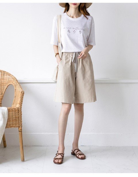 ショートパンツ 5分丈 ハーフパンツ ウエストゴム シンプル ポケットあり 短パン 部屋着 3XL アプリコット 收藏