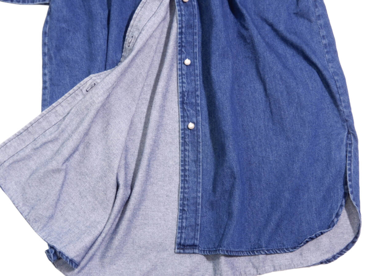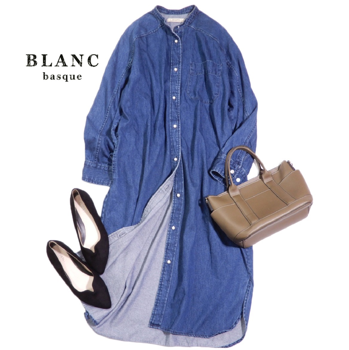 ブランバスク BLANC basque 大人可愛い☆パールボタン バンドカラー デニム ダンガリー シャツ ワンピース 38 收藏