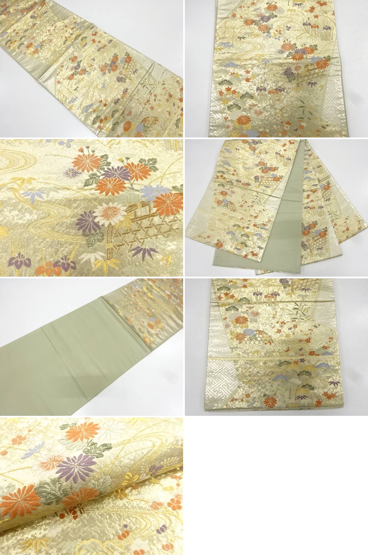 帯幅部分折れ山線に薄くすみが有ります。 状態は大変良いです。 着用可能です。 採寸・検品:杉中・福井 撮影:杉中 素材は正絹です。 地色は金です。 お支払い方法、送料・手数料はストア情報よりご確認お願いいたします。 全国一律1300円。11000円以上で送料無料 ※8/12より送料が変更されています。ご理解の上ご入札ください。 複数ご落札の場合で個別に発送住所がそれぞれ異なる場合は、お手数ですが、別途メールでご連絡下さい。 以前と発送先が異なる場合、別途メールでご連絡下さい。 多少の時代シミ、くすみがある場合があります。 デジタルカメラやモニターの特性により色が忠実に再現できない場合があります。 ご理解頂いた上でのご入札お待ちしております。 ご返品もお受け致しますが、送料、振り込み手数料は、お客様負担でお願いします。 |