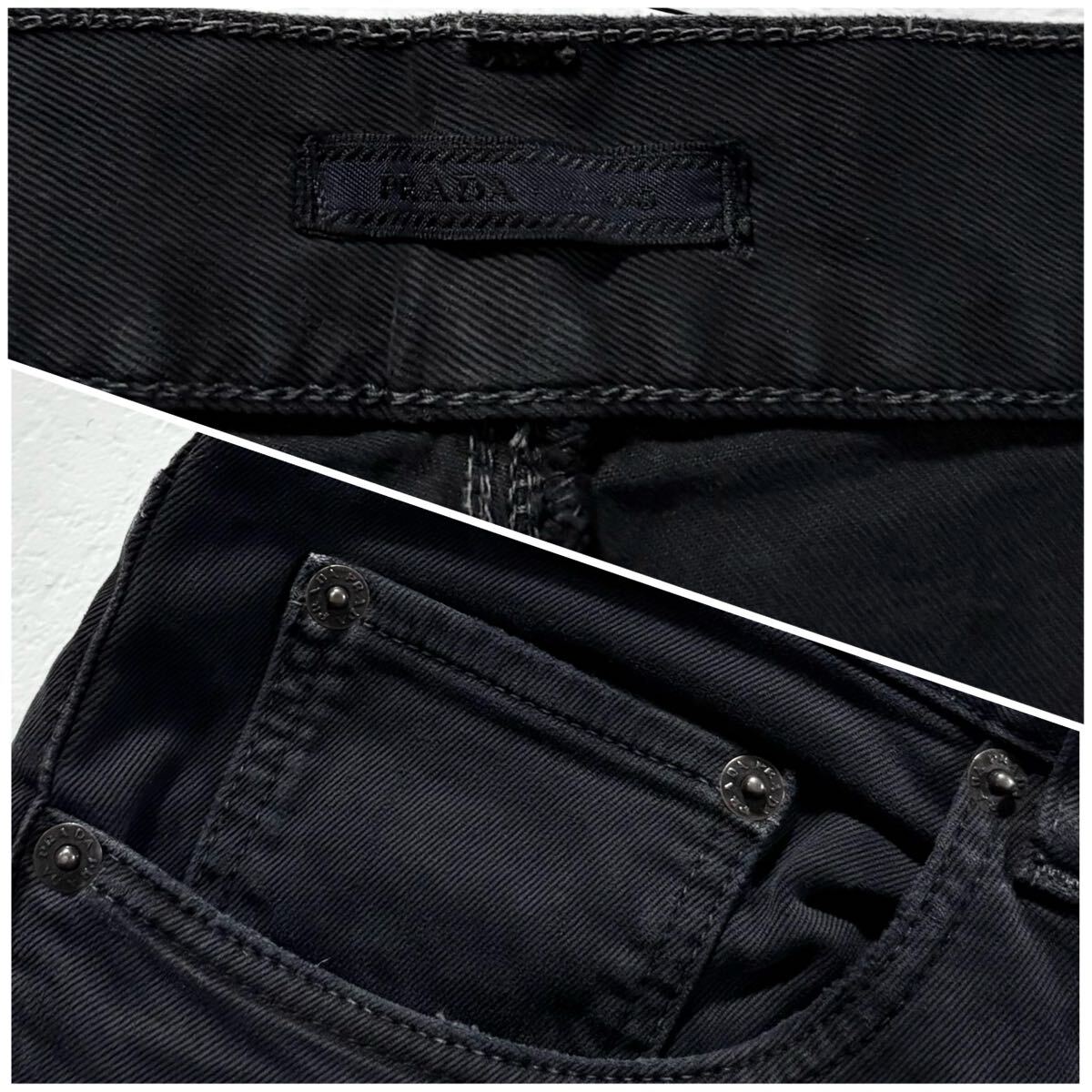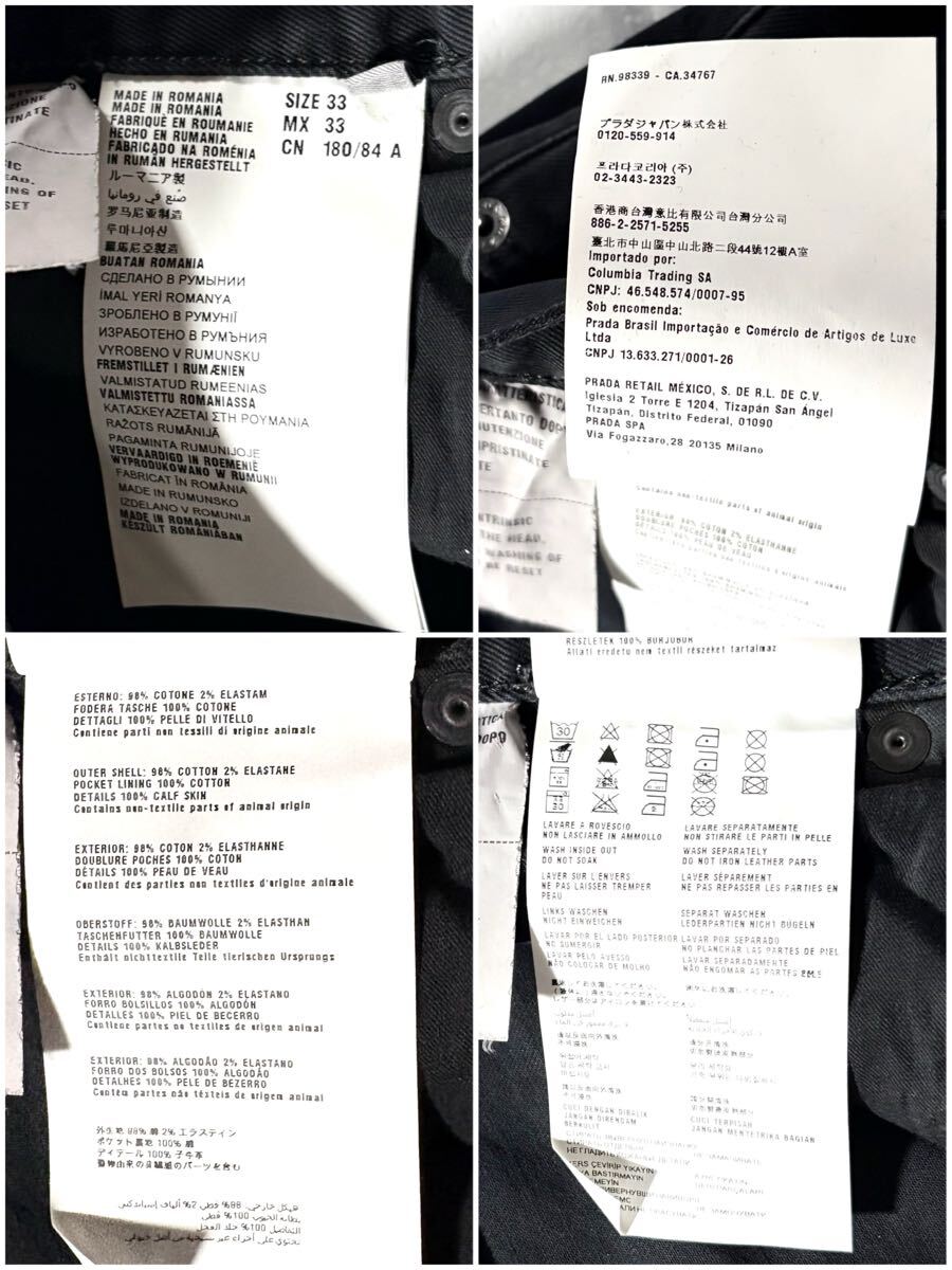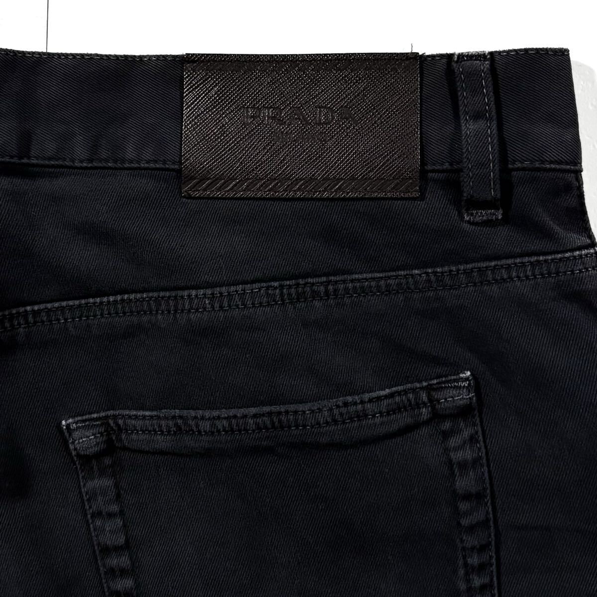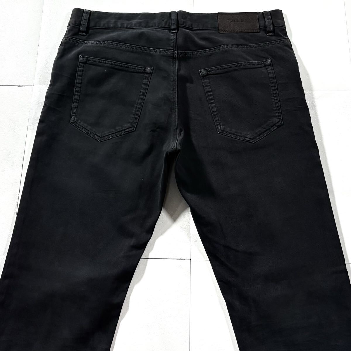極上/Lサイズ●PRADA プラダ ストレッチ パンツ コットン チノパン メンズ 洗濯可能◎ 背面レザーロゴ 日本正規品タグ有 黒 ブラックw33 收藏