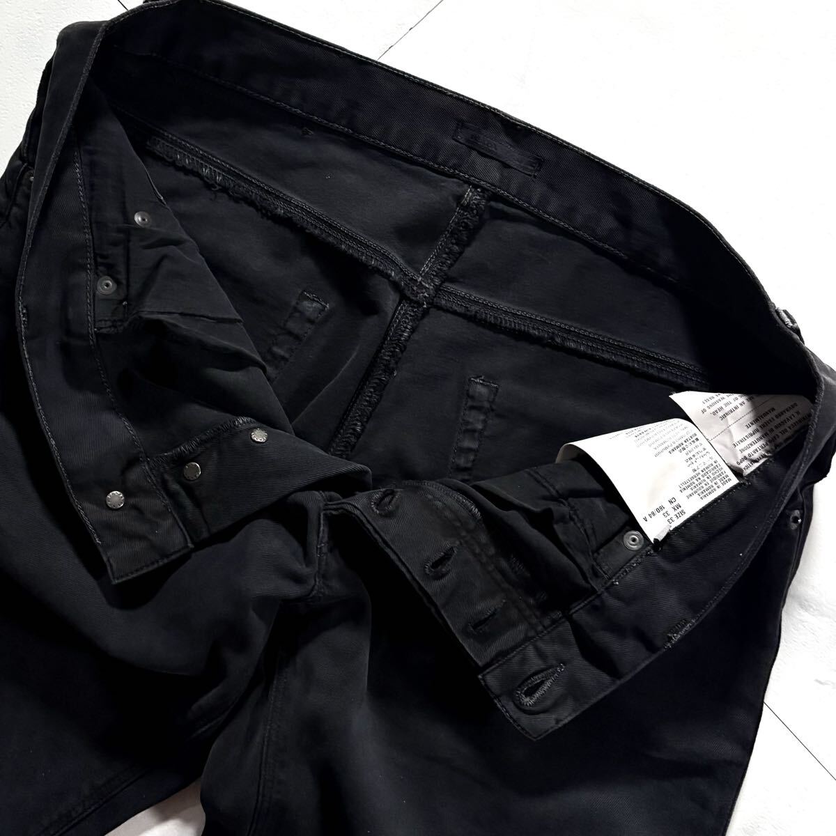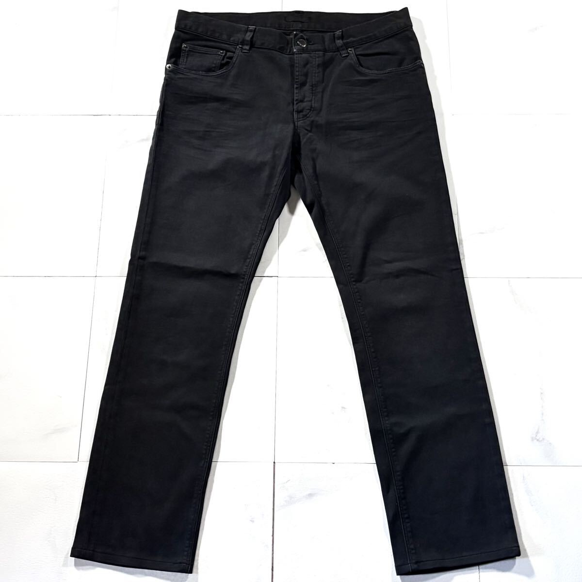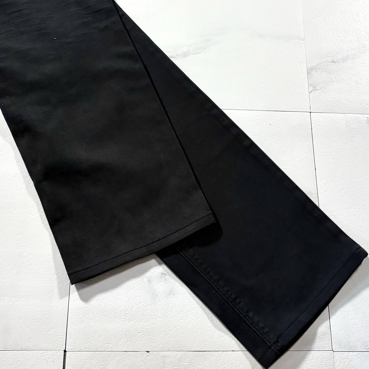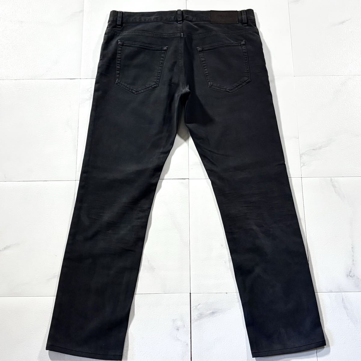 極上/Lサイズ●PRADA プラダ ストレッチ パンツ コットン チノパン メンズ 洗濯可能◎ 背面レザーロゴ 日本正規品タグ有 黒 ブラックw33 收藏