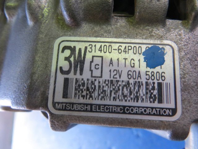 | 商品の形状 | 【エンジン型式】:R6A 【トランスミッション方式】:DCT 【仕様】:リブベルト 【メーカー】:三菱 【No】:31400-64P00 【電圧】:12V 【電流(A)】:60A 【走行距離】:86289km |