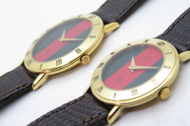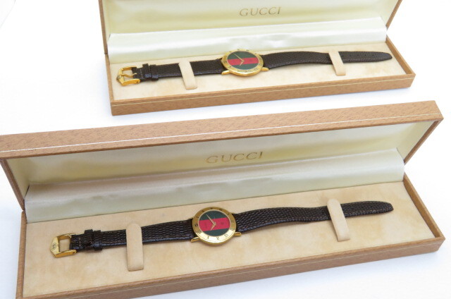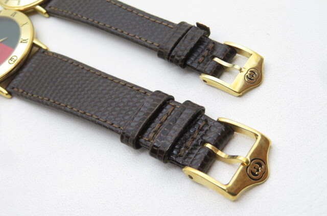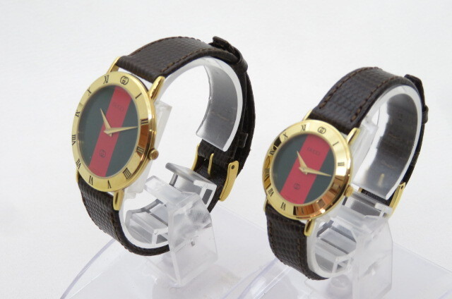 1円~【ペアウォッチ 動品】GUCCI グッチ 3000M/L シェリーライン クオーツ 腕時計 ブラウン リザードベルト純正 ケース有り 10-8-10 收藏