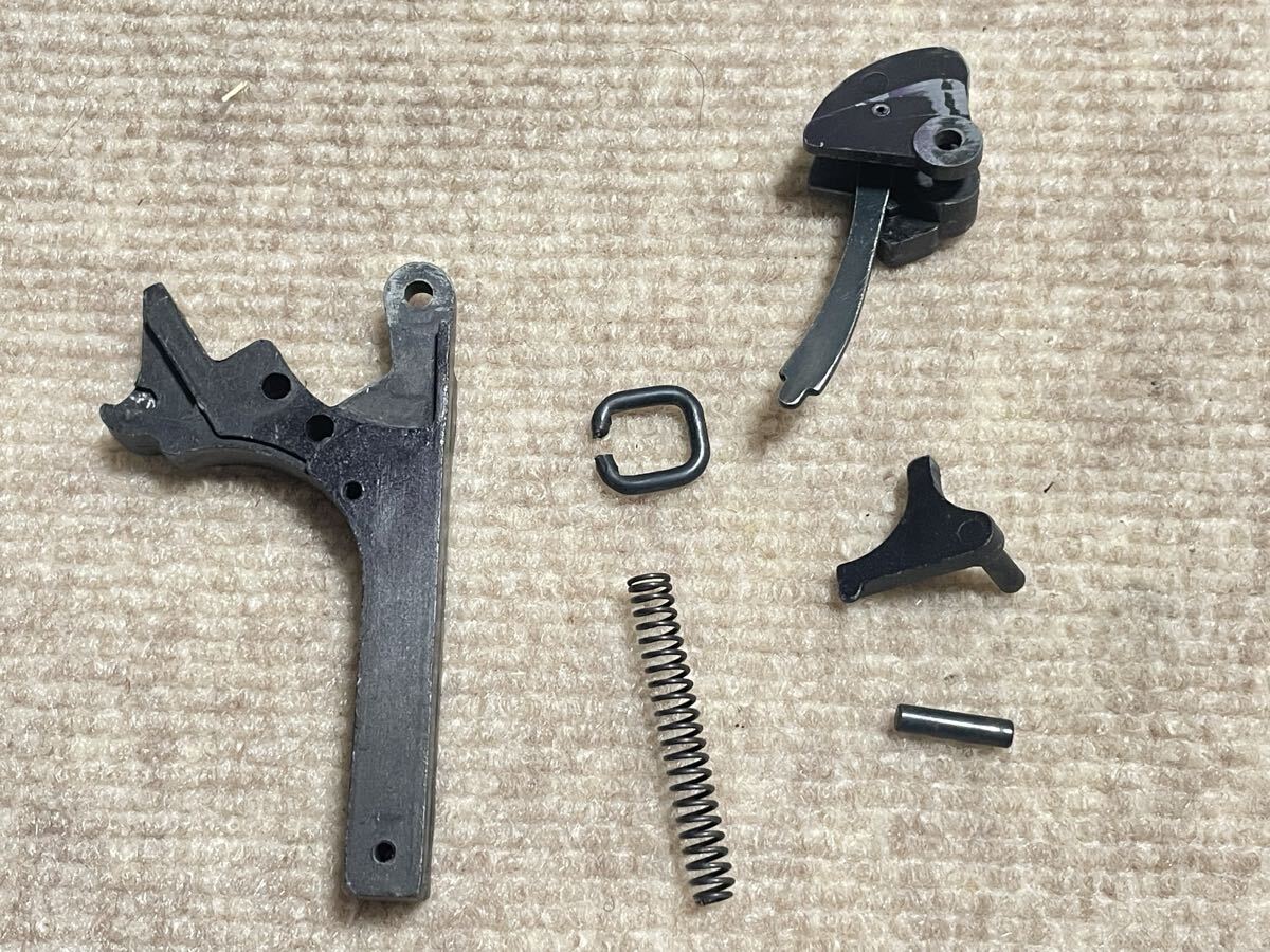 未発火のMGCプラ製ルガーP08 CPブローバックのハンマー.シアーのセットです。