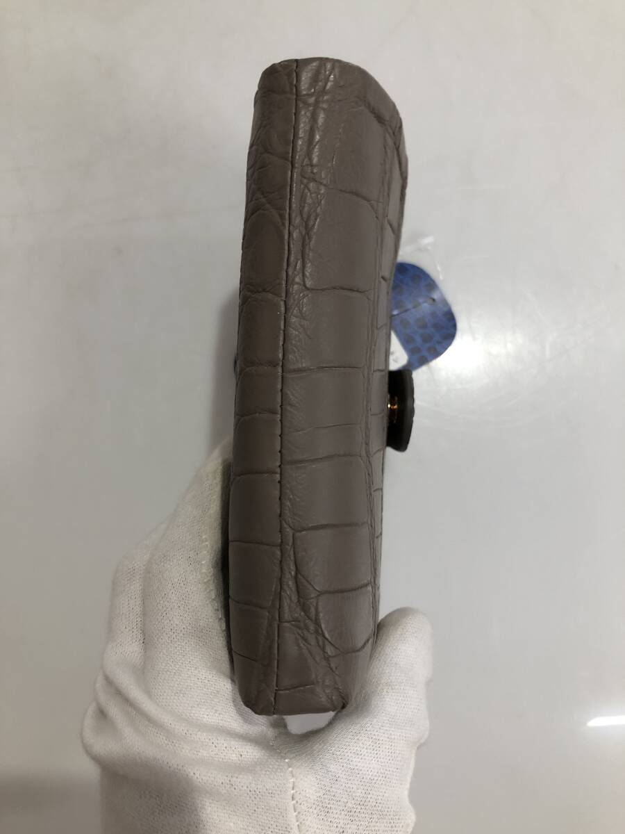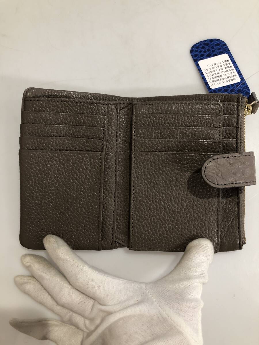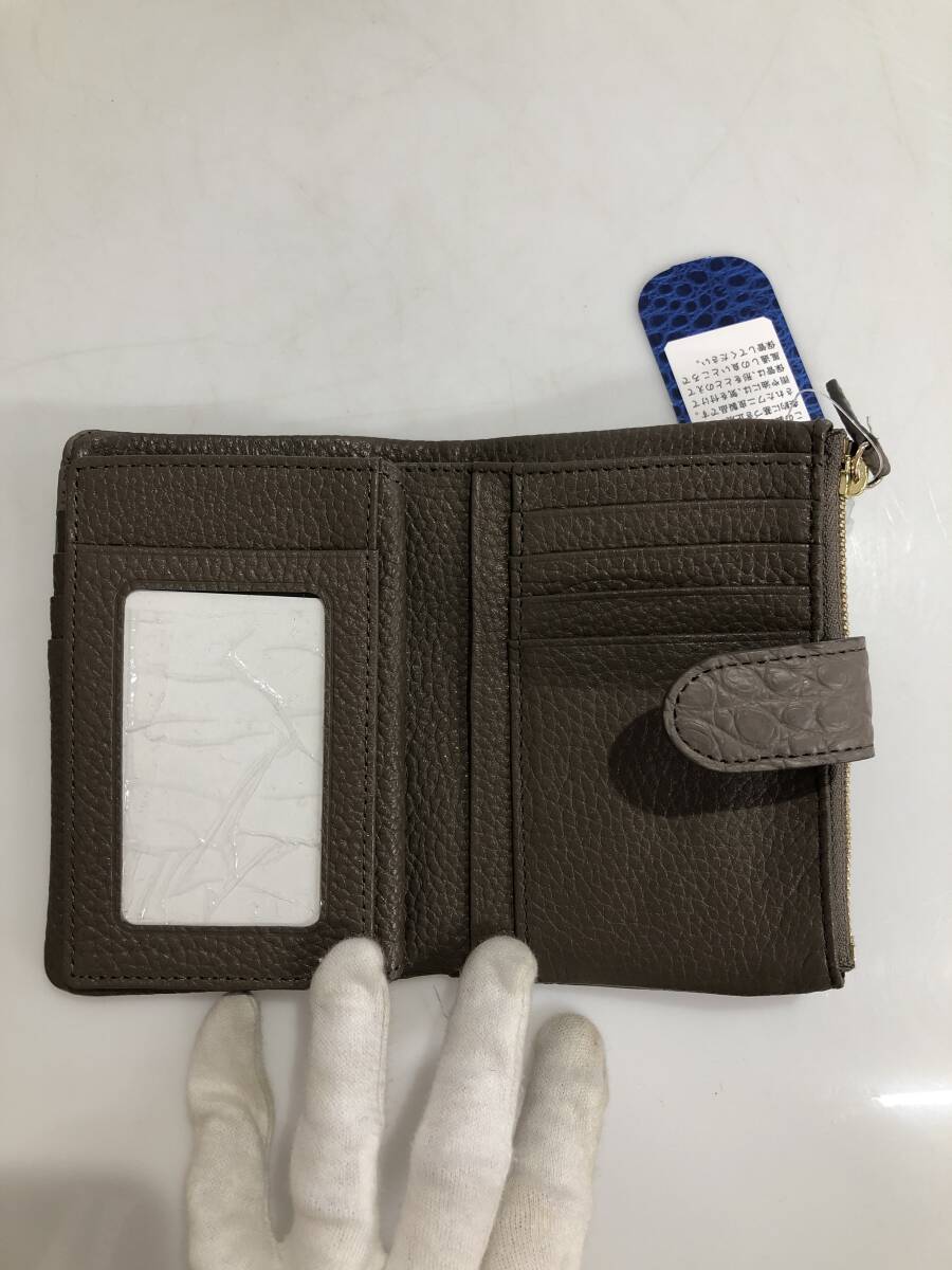 HB5180 クロコダイル 折り財布 財布 ウォレット 小銭入あり ファスナー カード入 ワニ革 レザー 箱付き 未使用品 收藏