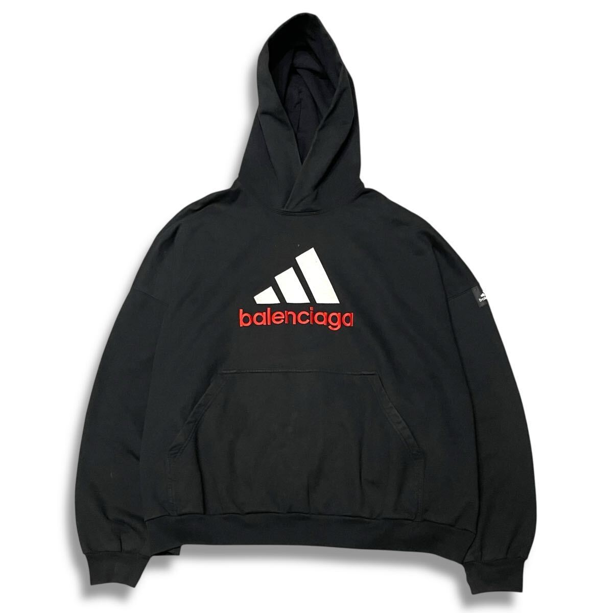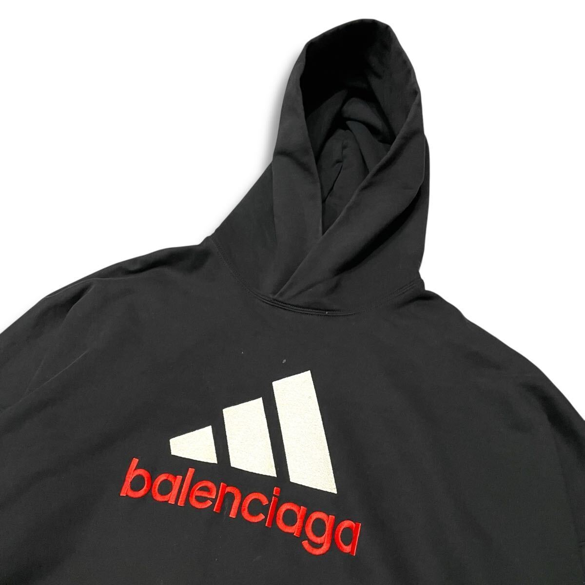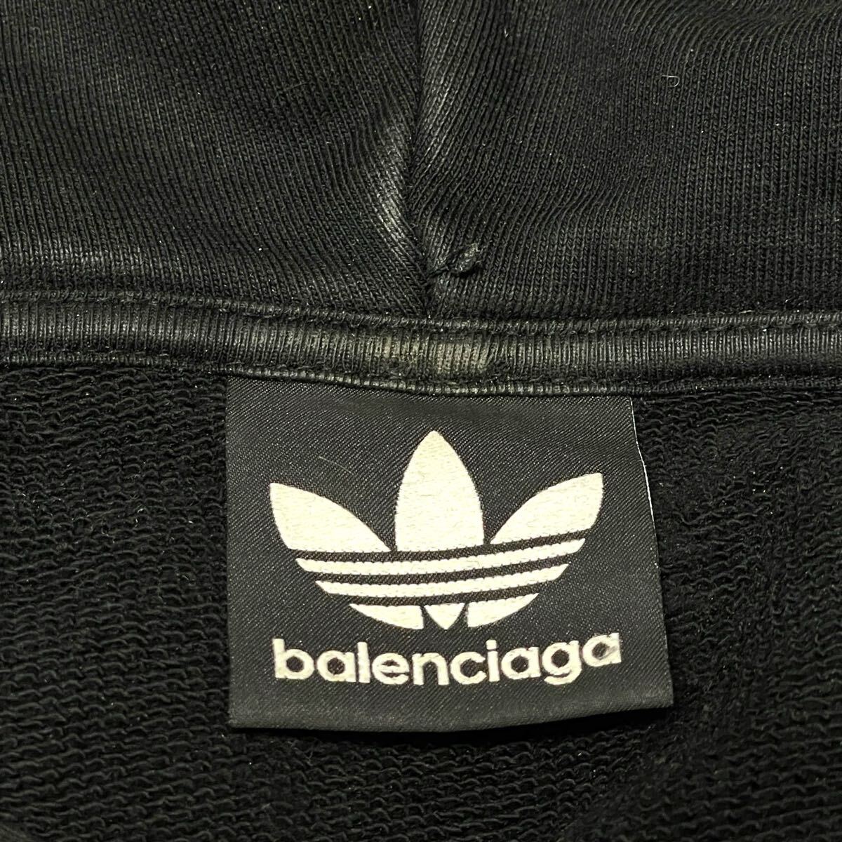 37 国内正規品 BALENCIAGA × ADIDAS バレンシアガ × アディダス 22AW 724568 ロゴ刺繍 スウェット フーディー パーカー L ブラック 收藏