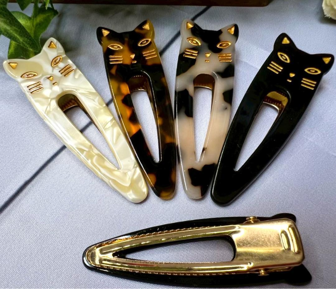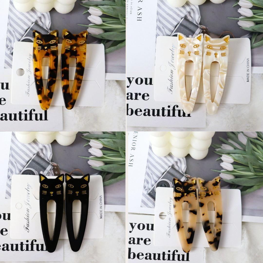 マーブル 猫型 ヘアピン 4色 セット まとめ売り ヘアクリップ アクセサリー 收藏