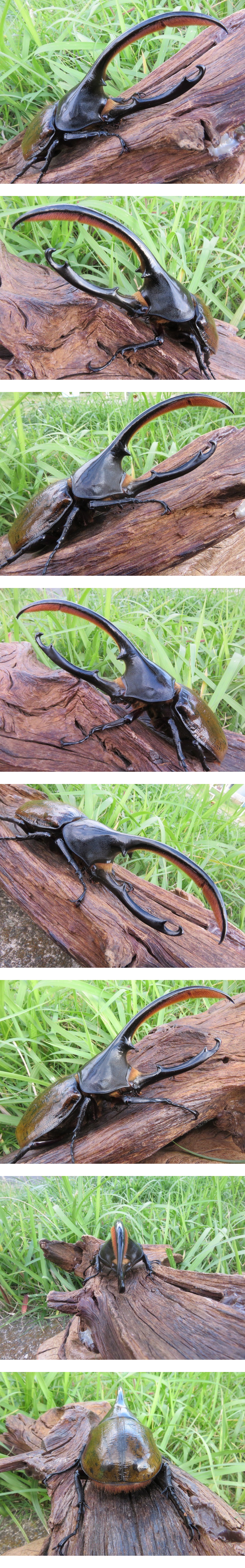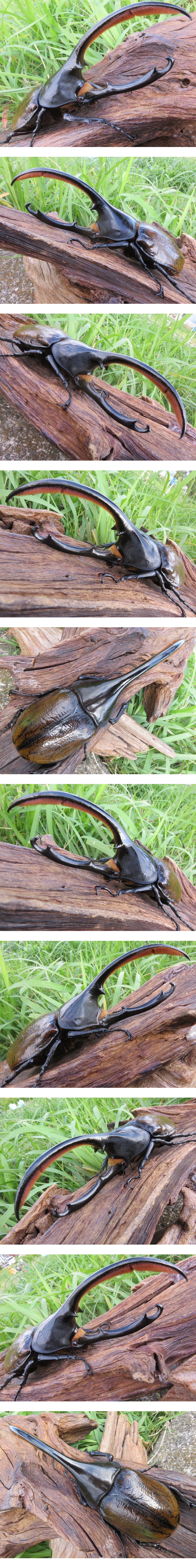 ※ 計測方法は、虫を平らな所に置き、ノギスにて計測し、胸角~上翅末端までの最大値約140mm、お尻までの最大値約142mm