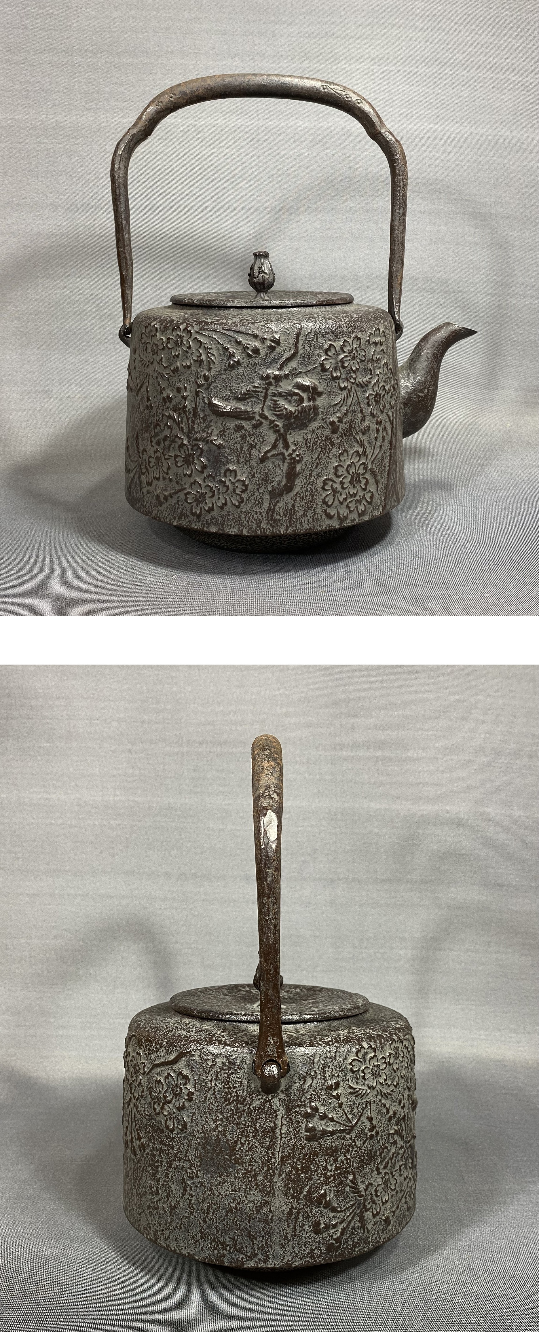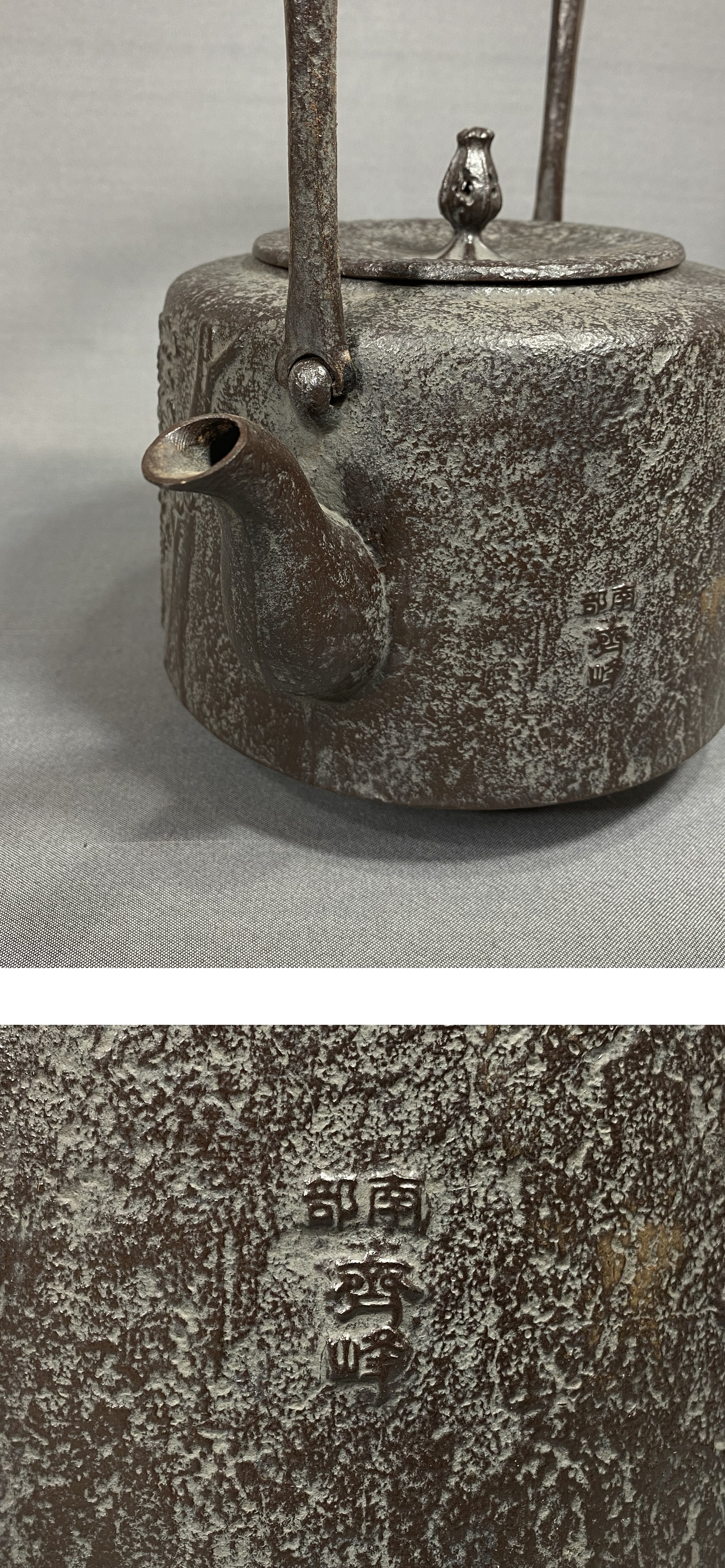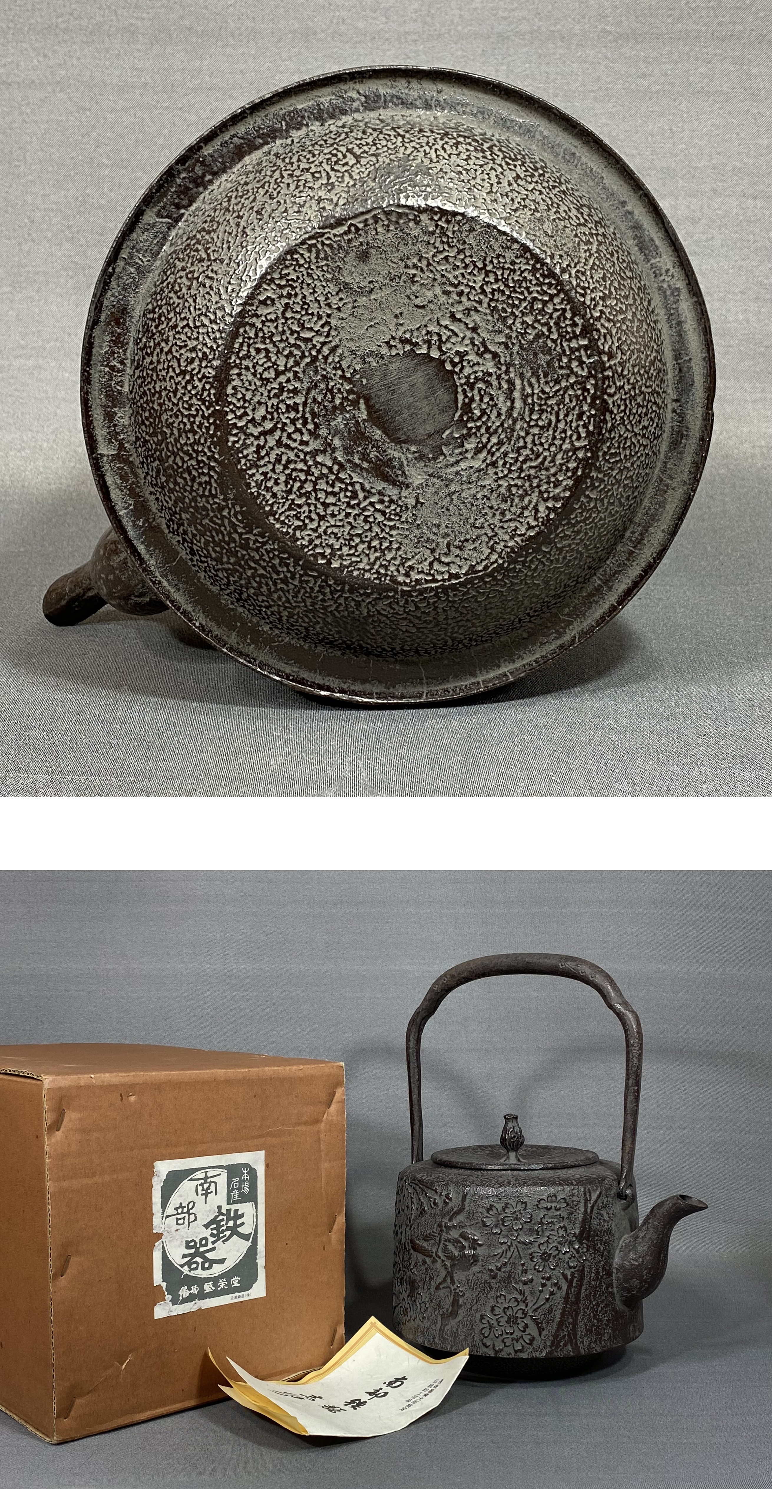 【風車】南部鉄器 名工 及川斎峰造 桜島文 桶形 鉄瓶 未使用品 ▲共箱 栞▲急須 煎茶道具 茶道具 工芸品 南部鉄瓶 本場盛岡 收藏
