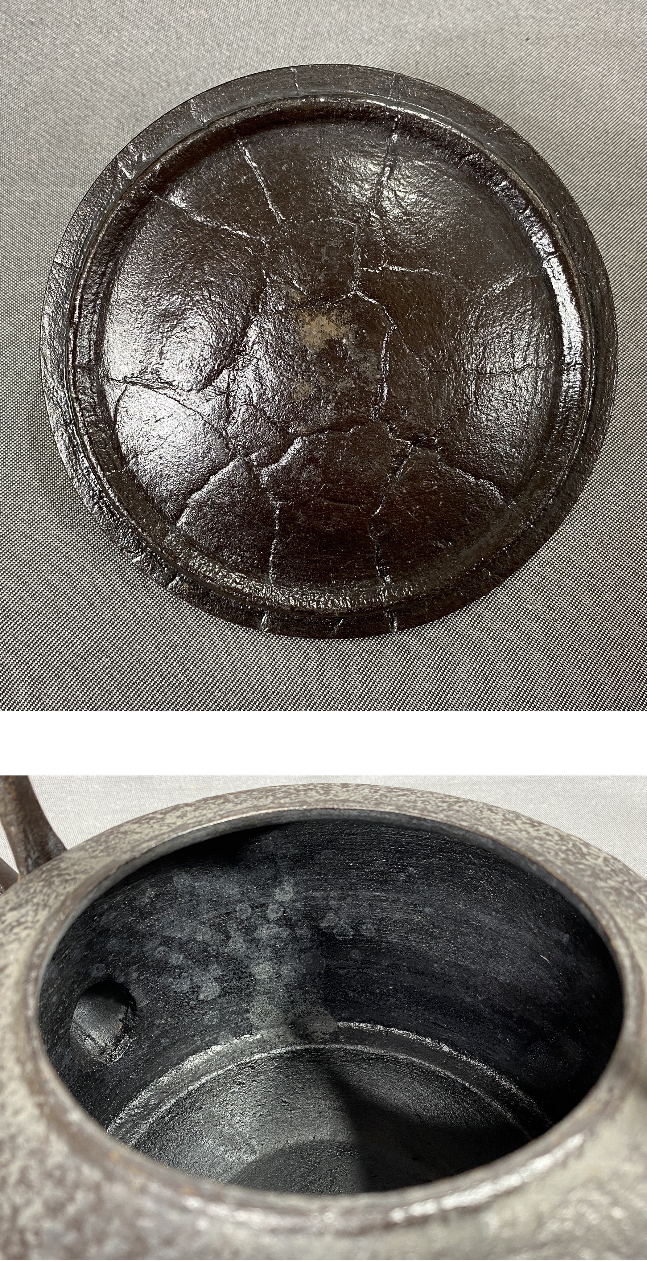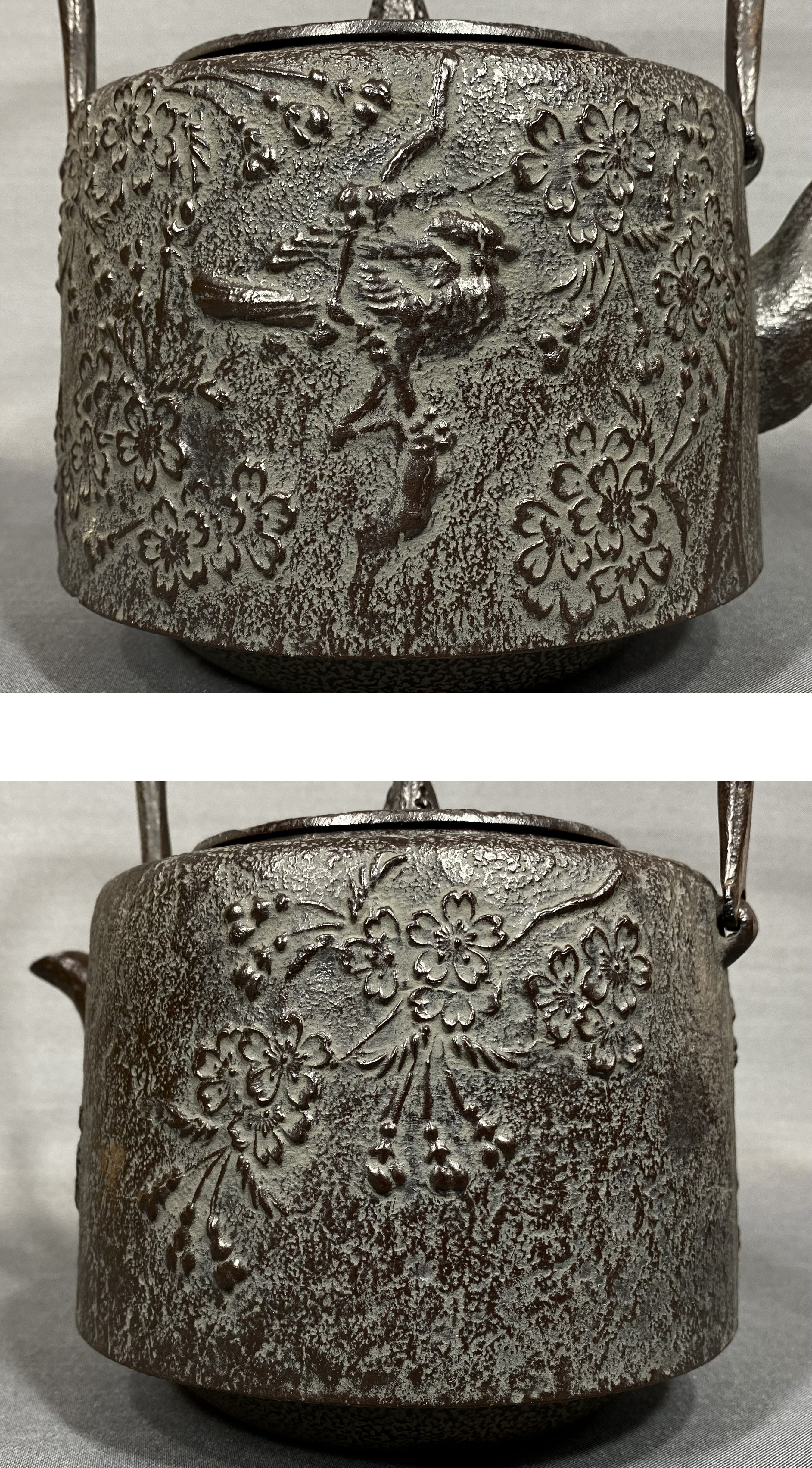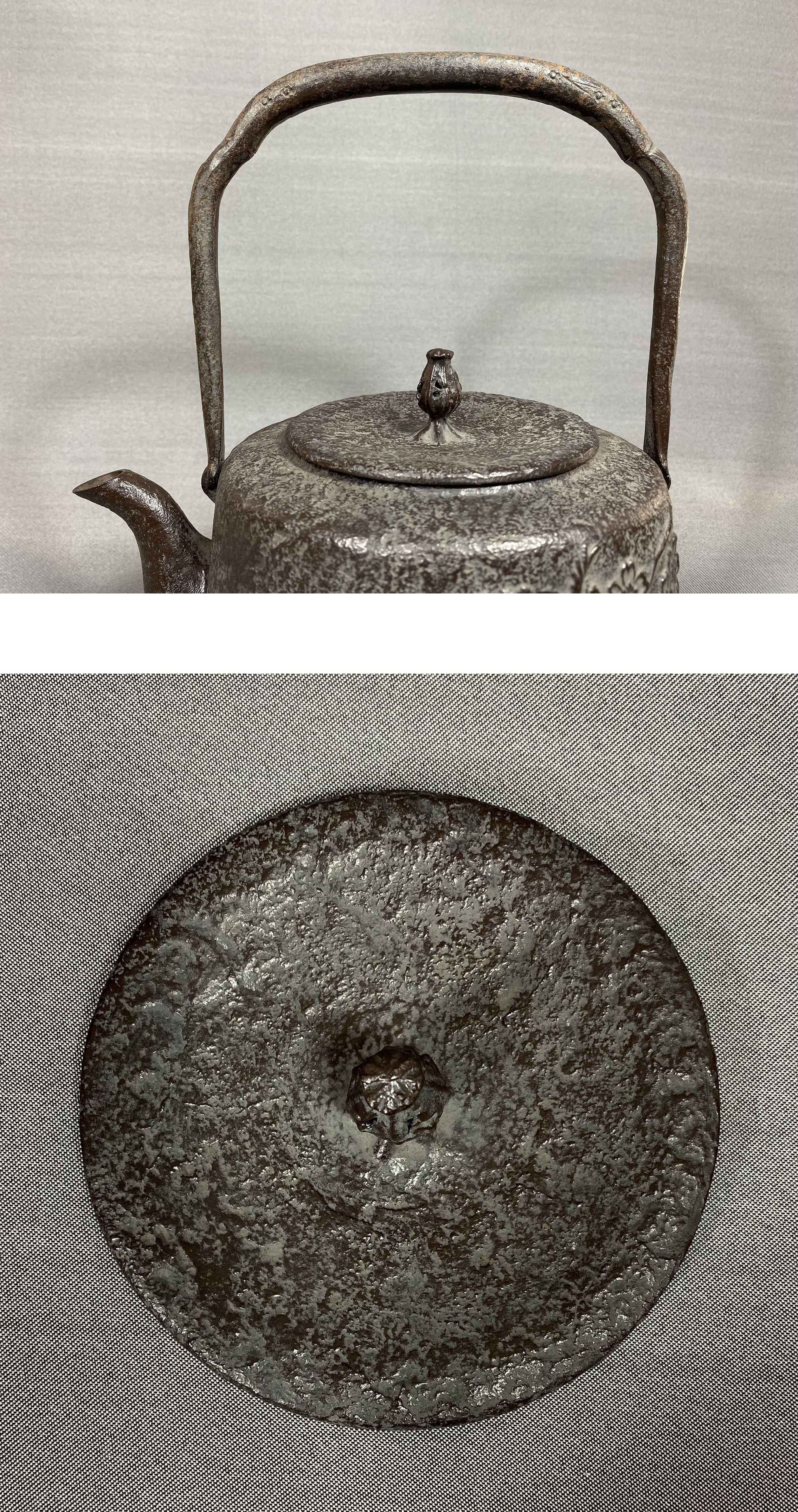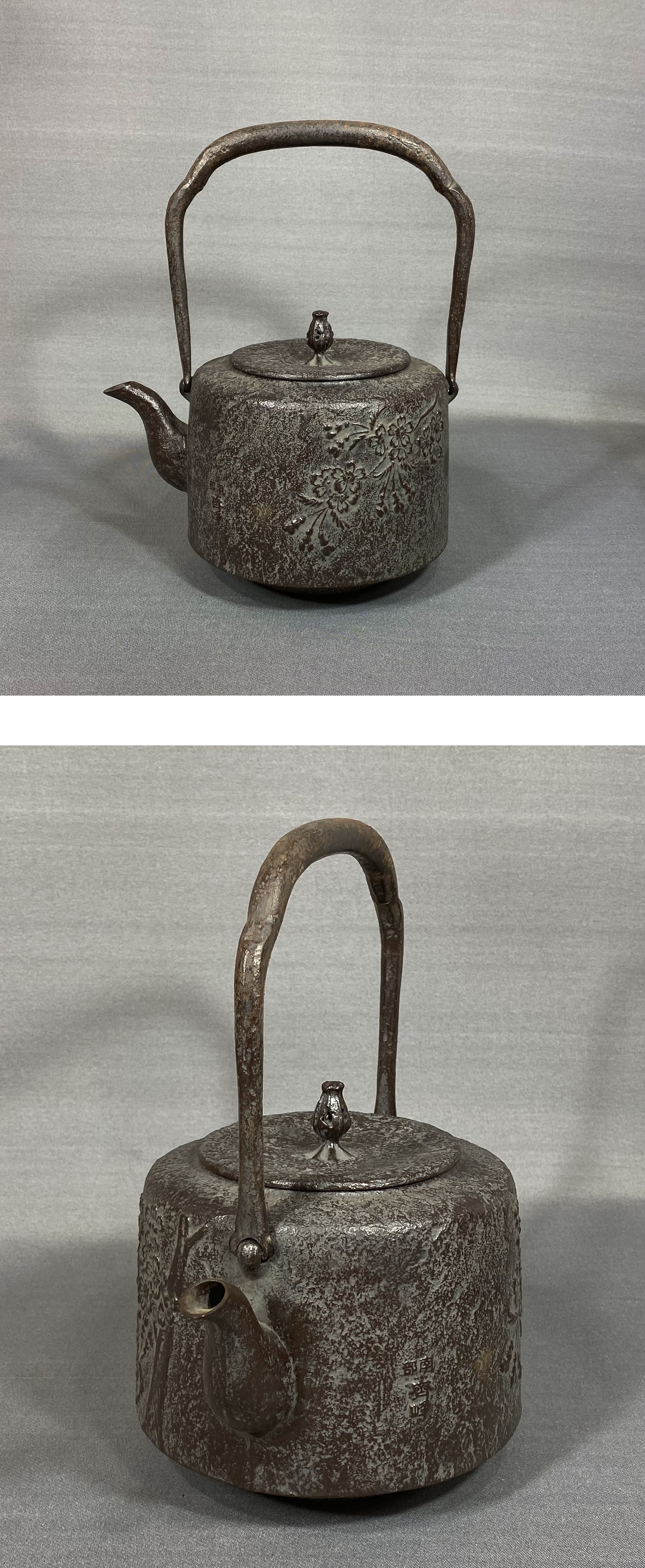 【風車】南部鉄器 名工 及川斎峰造 桜島文 桶形 鉄瓶 未使用品 ▲共箱 栞▲急須 煎茶道具 茶道具 工芸品 南部鉄瓶 本場盛岡 收藏